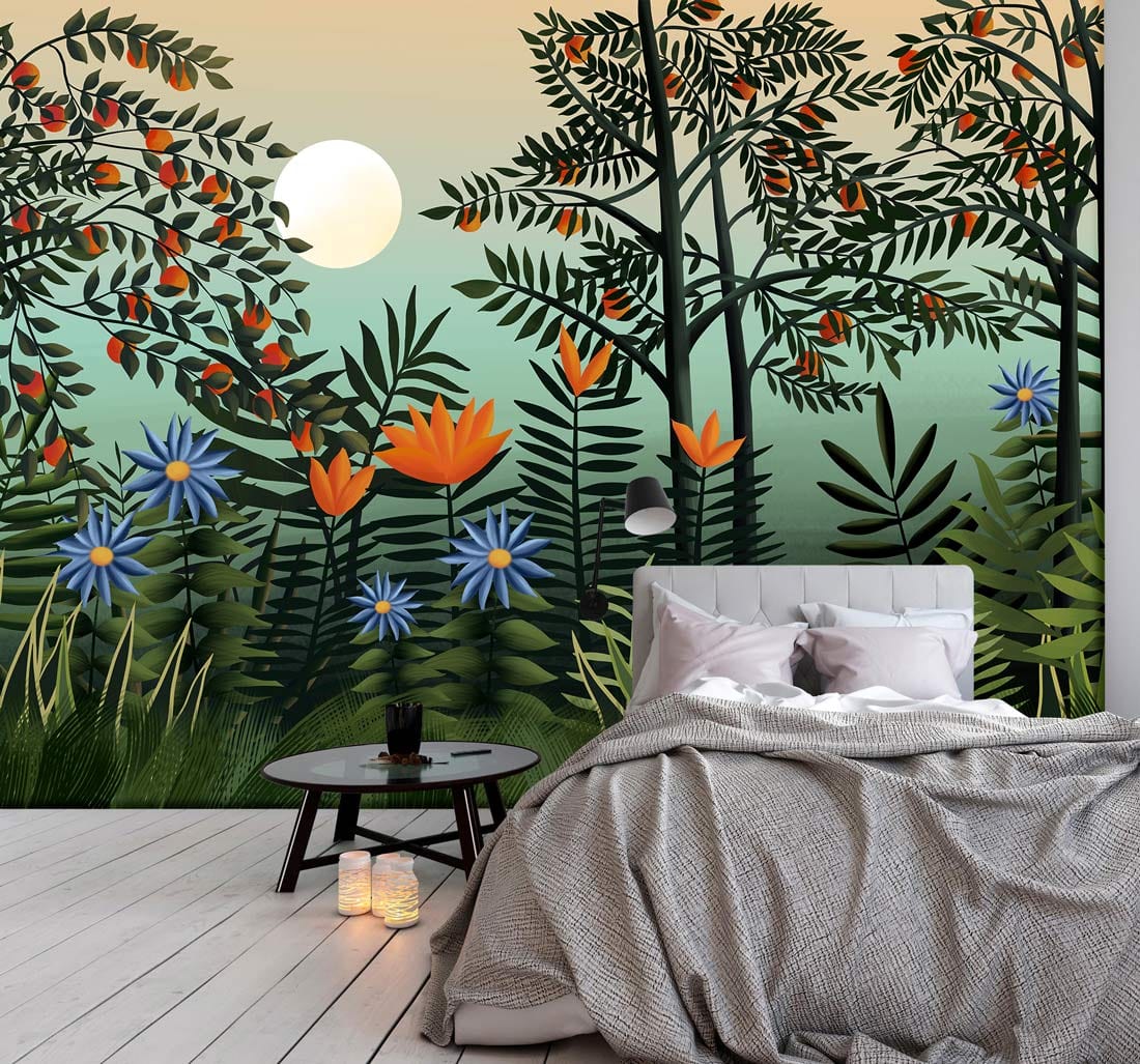 Obtenez une sensation paisible avec cette murale de papier peint en bois vert feuillu dans votre maison. Avec de magnifiques tons naturels de vert, il y a certainement une sensation vintage et rêveuse à cette œuvre d'art. Ces fonds d'écran magnifiques et vivants vous permettent de plonger dans l'inspiration et la grandeur de la nature et de l'art. Excellent choix de murmure peint pour votre couloir, votre chambre et votre salon.