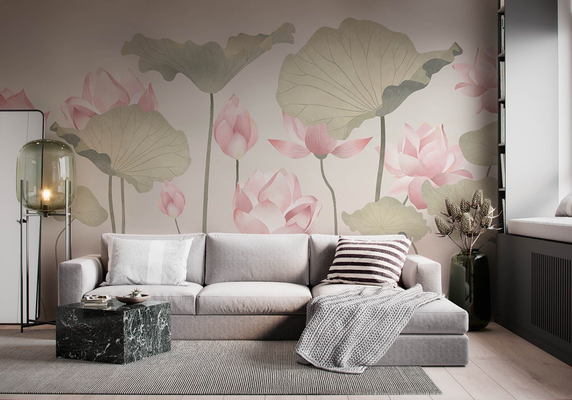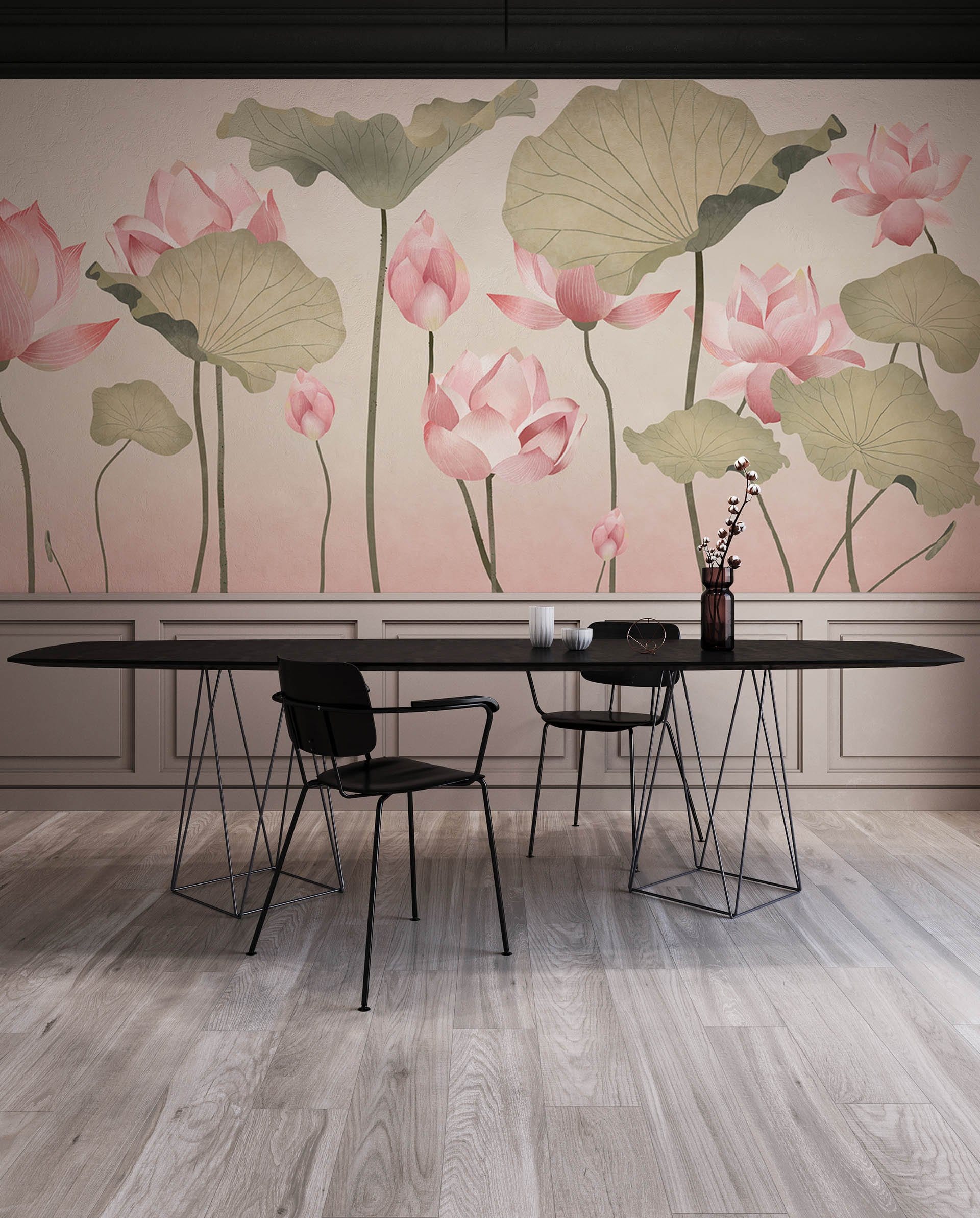 Ajoutez un nouvel élément à votre espace avec du lotus frais sur votre papier peint. Maintenant, ayez ces beaux lotus & des feuilles habillent vos murs d'aquarelles fluides pour un effet enchanteur. Ce sticker mural agréable a une ambiance positive qui peut améliorer votre humeur instantanément. Utilisez-le dans votre salon ou votre chambre pour ouvrir votre espace.