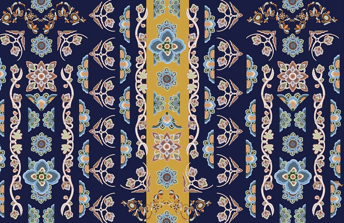 Attirez l'attention de tous avec cette œuvre d'art parfaite de notre nouvelle collection de peintures murales. Un motif vertical de Fleurs Auspicieuses sur un fond bleu foncé et un thème beige et brunâtre qui donnera à votre maison un niveau d'élégance supérieur. Ce papier peint moderne est l'un des styles les plus tendance qui rendra vos murs si attrayants et stimulera l'énergie dans votre maison. Créez ce papier peint dans votre salon. Ou dans votre chambre à coucher, profitez de la chaleur de ce design et des vibrations joyeuses qui vous entourent.