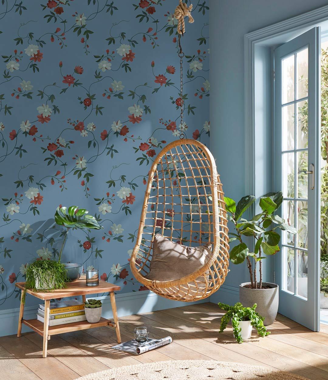 Embellissez votre maison avec cette petite fleur de fleur peint mural. Cette conception en fond bleu poussiéreuse avec des vignes fleuries rampant sur vos murs ajoutera instantanément plus de fraîcheur à vos chambres. Associez-le avec des meubles traditionnels et des décors de maison pour un look charmant à vos intérieurs.