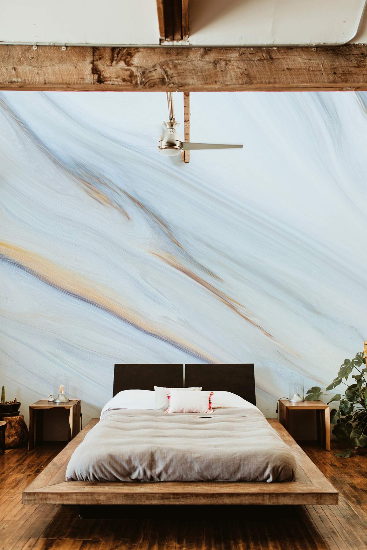 Apportez un peu de rock 'n' roll à vos murs avec ce papier peint panoramique bleu clair. Les magnifiques effets cristallins subtils des motifs de marbre s'adaptent à presque tous les styles de décor. Ce papier peint panoramique peut vous aider à créer le look que vous souhaitez dans votre espace tout en incluant un peu de nature sur vos murs. Le design texturé et les douces couleurs bleu clair et blanc cassé ajouteront du style et du drame à n'importe quelle pièce de la maison tout en offrant un intérêt visuel et un look audacieux.