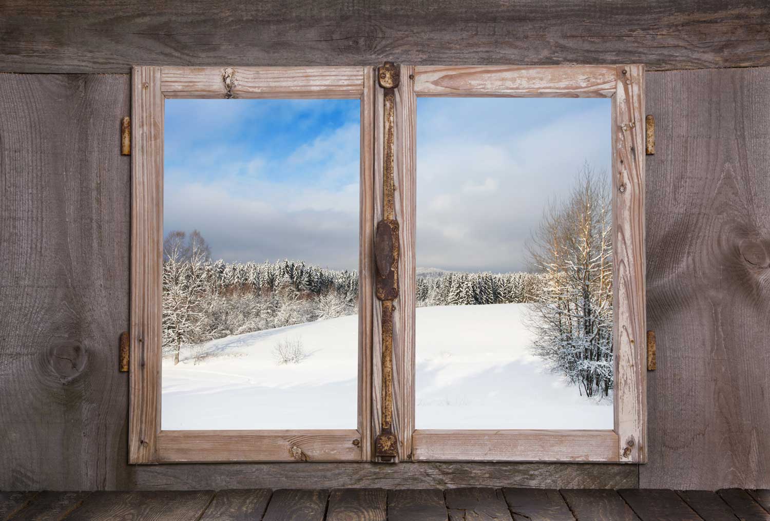 Regardez par la fenêtre et profitez du magnifique paysage enneigé avec ce paysage hivernal de forêt enneigée vue à travers le papier peint. Ajoutez une touche paisible et agrandissez l'espace de votre pièce avec un ciel bleu et des bois de neige blanche. Papier peint parfait pour votre chambre et votre salon.
