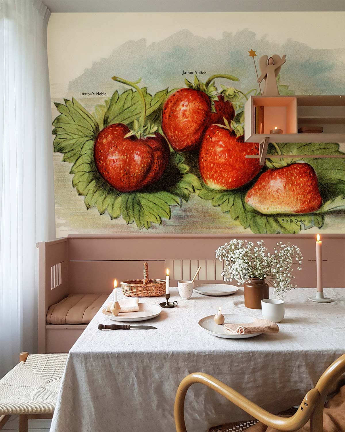 Les papiers peints muraux donnent à la chambre de votre enfant un nouveau look avec un minimum d'effort et de coût ! Dans cette optique, essayez notre papier peint mural Vintage Strawberry - un design adapté à la chambre de vos enfants, à la crèche ou à la salle de jeux. Le moyen idéal d'apporter un peu de charme fermier, cette peinture murale vous fera regretter de ne pas avoir acheté quelques kilos à la ferme, mais nous ne pouvons pas vous aider à le faire. Une fois collée sur votre mur, elle ne manquera pas d'apporter du caractère et du charme pour égayer une chambre ou un couloir. Belle et de haute qualité, cette peinture murale transformera votre intérieur avec un look élégant et vintage avec une touche contemporaine sur la décoration de la campagne !