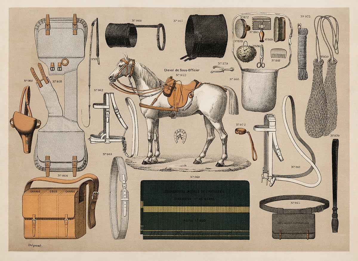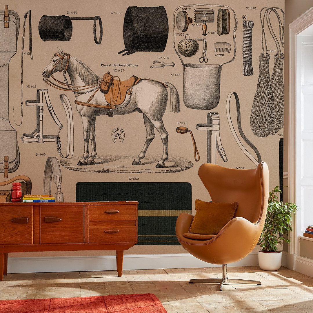 Notre papier peint mural harnais antique est le décor équestre par excellence. Avec le design riche et étonnant d'une grande variété de harnais de chevaux anciens sur un effet de motif subtil, vous pouvez ajouter un sens de l'histoire à votre maison. Avec ses couleurs neutres et ses images en forme de croquis, il rappelle les temps passés, lorsque les chevaux étaient le principal moyen de transport. Par conséquent, ce papier peint mural est le moyen idéal de commencer votre chambre de chevaux anciens.