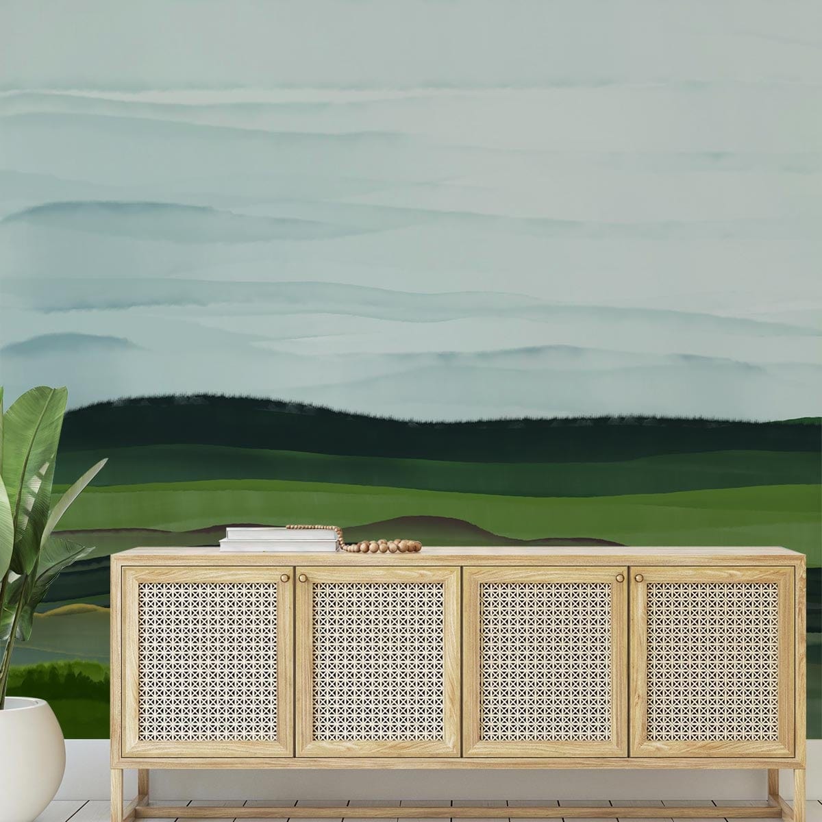 Profitez de la transition des couleurs avec ce design aquarelle pour les collines vertes mélangées avec le ciel clair. Les collines avec les nuances de vert qui sont pleines d'énergie et de profondeur et le ciel plein d'espoir sont tous les deux ensemble pour terminer la perfection. Ce design est si simple et vous fait sentir que votre place a l'air large en raison des couleurs simples lites. Ces conceptions de collines vertes avec l'effet Horizon seront un bon choix pour votre petite zone si vous voulez ajouter de la profondeur et la rendre plus grande afin que vous puissiez donner le nouveau thème de la place. La dégradation des couleurs est si calme et soignée qui rend la conception adaptée à de nombreuses zones, non seulement à la maison, mais peut être utilisée dans un bureau ou dans une clinique et même à l'entrée principale. Terminez l'élégance et utilisez des rideaux fluide, et l'une des couleurs solides du papier peint mural pour les tapis et les meubles pour faire du contraste.