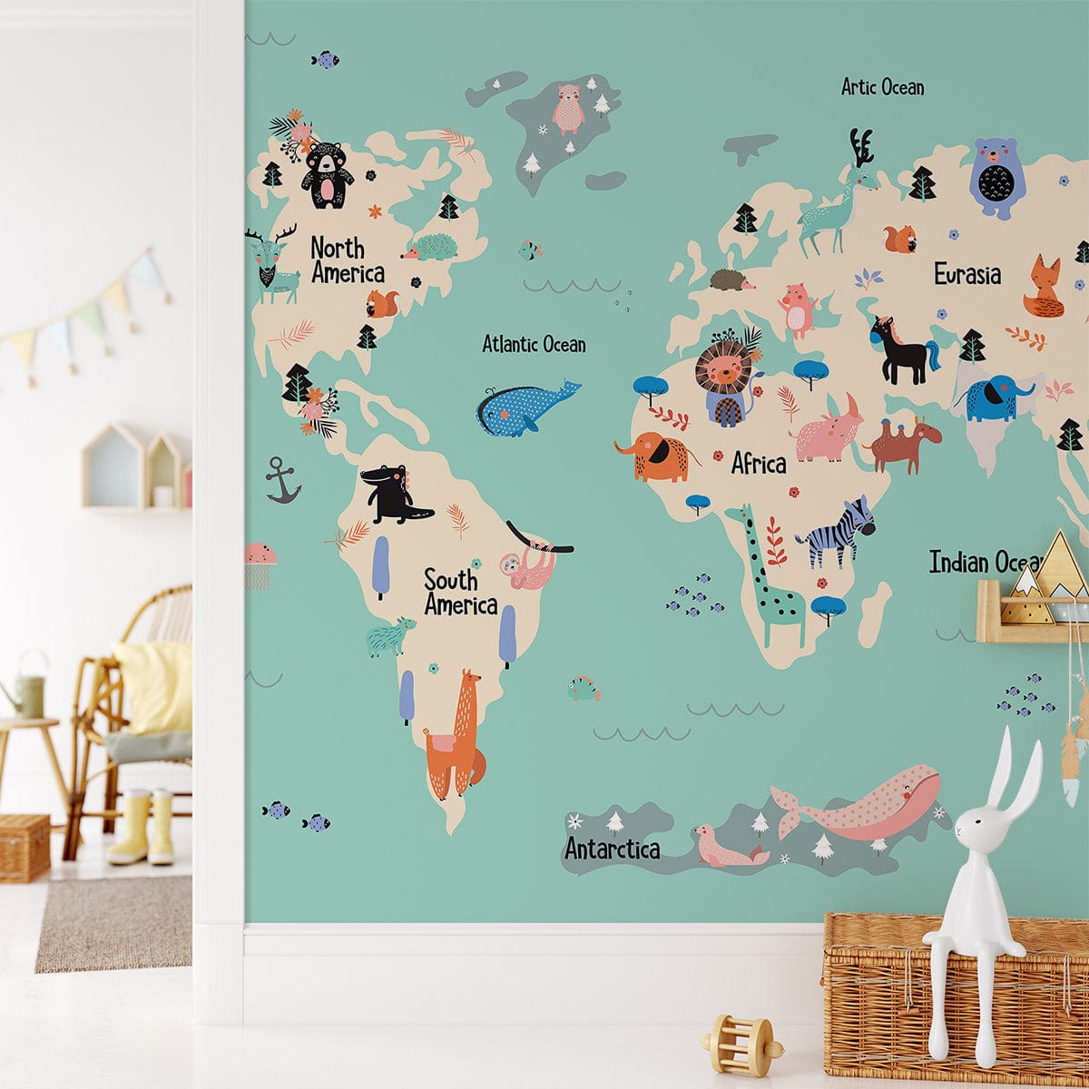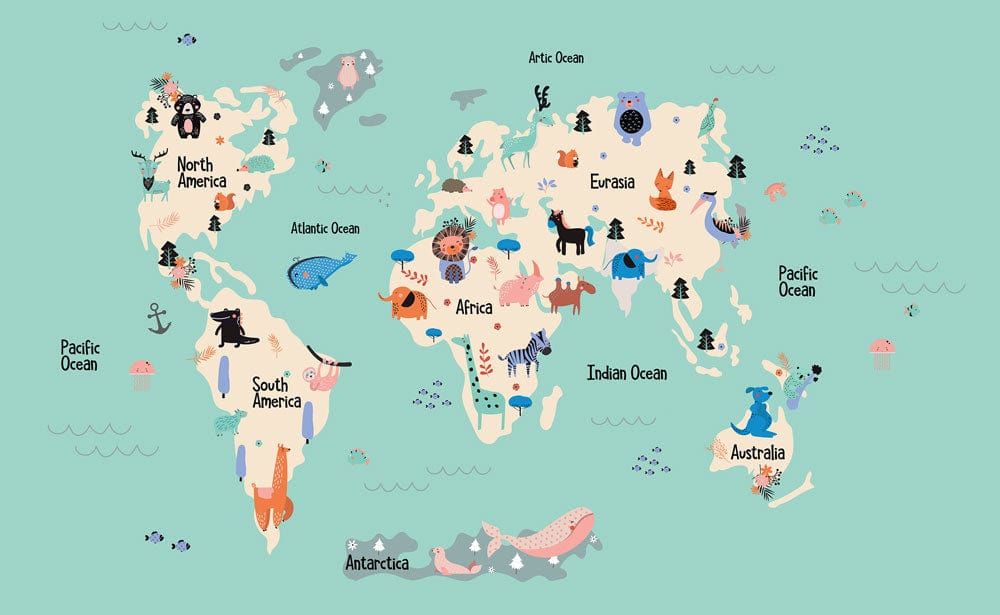 Transformez la chambre, la salle de jeux et la chambre d'enfant de votre enfant en une aventure incroyable avec le papier peint mural Cool Animal Map. Les animaux vibrants et colorés sont réunis dans cette peinture murale pour créer un point focal tendance et élégant que les enfants vont adorer. Le design de la carte présente divers animaux du monde entier, ce qui permet à votre enfant de voyager dans le temps. Les enfants adoreront la regarder et découvrir où vit chaque animal dans le monde grâce à ce papier peint animalier passionnant.