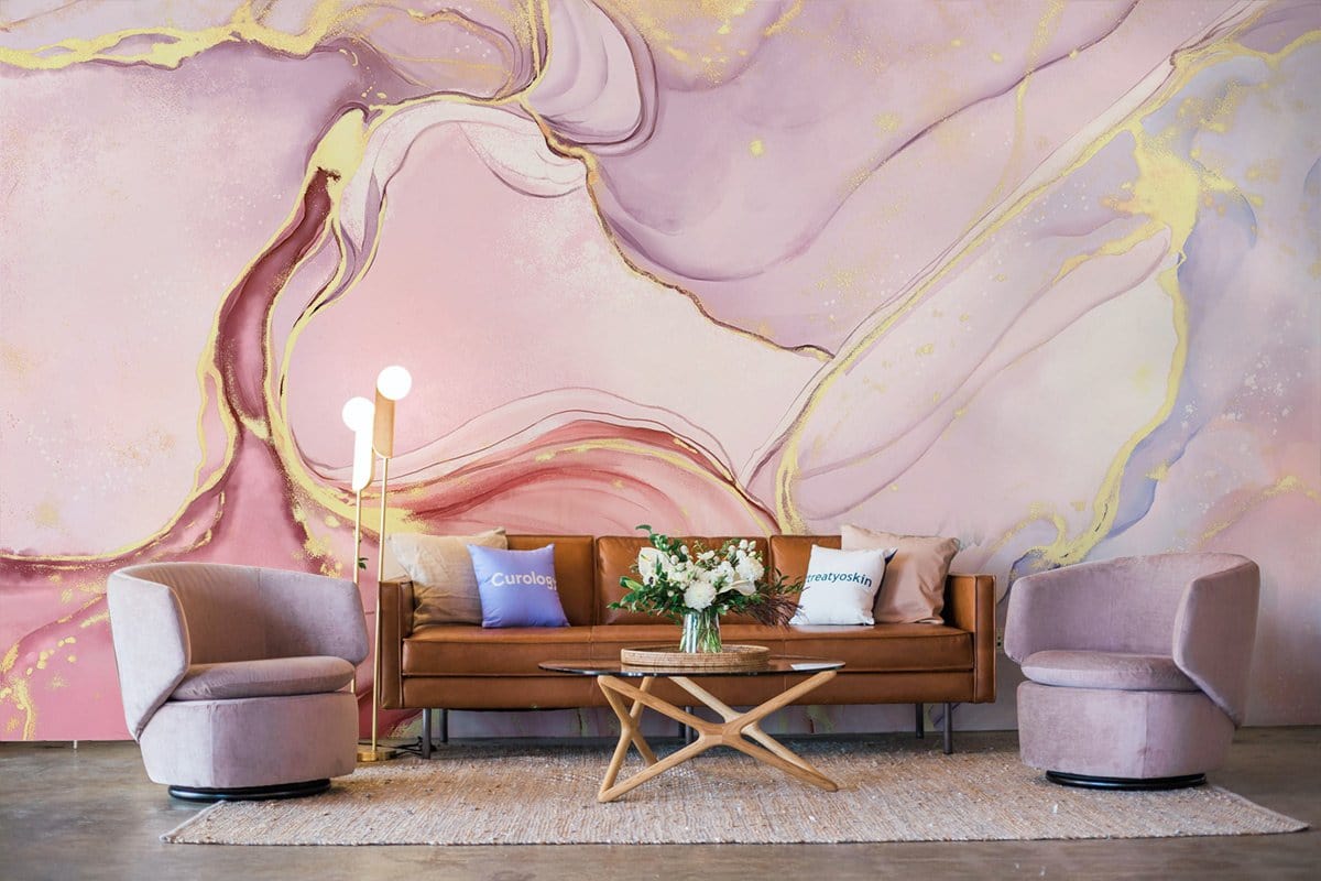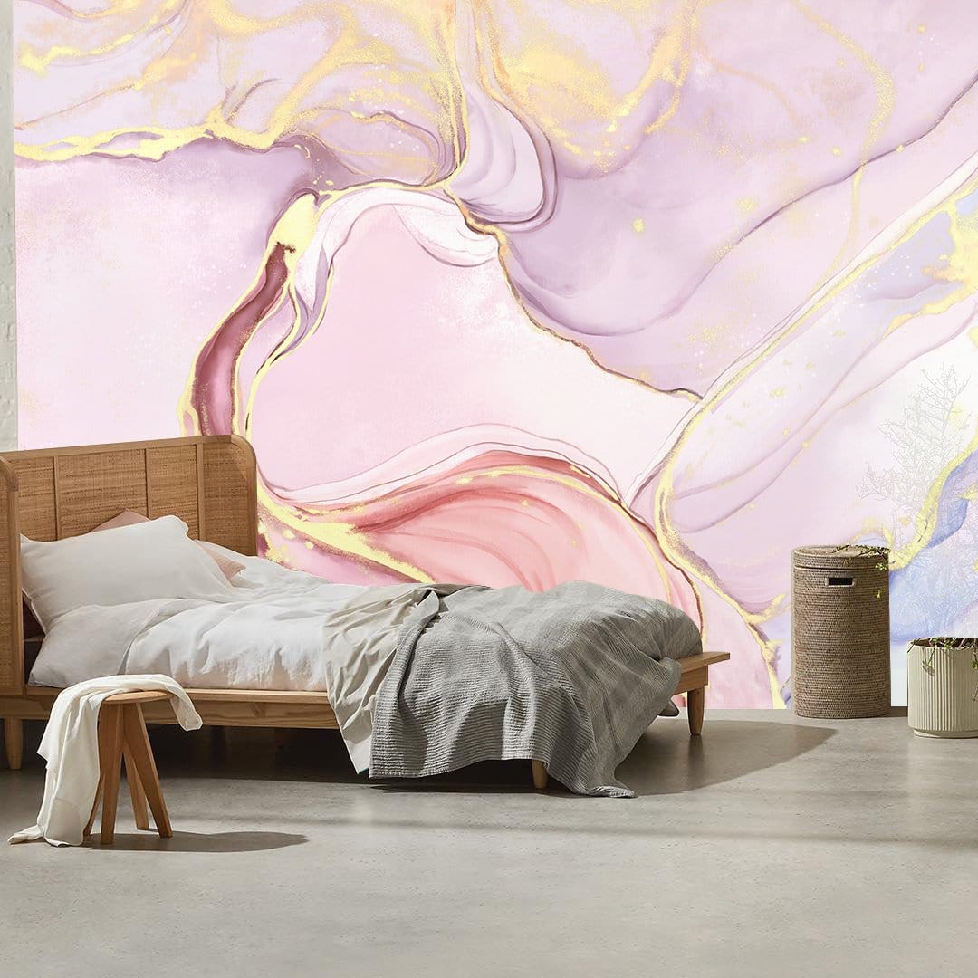 Ce papier peint effet marbre rose est rehaussé par les lignes dorées de ses fissures et de ses veines. Le beau marbre de couleur rose est décoré de lignes en métal doré, qui rehausseront votre mur uni et toute l'atmosphère de votre espace. Il fonctionnera avec brio dans votre salle de bain, votre salon et votre couloir. Utilisez ce papier peint pour créer un moment sensationnel pour votre maison.