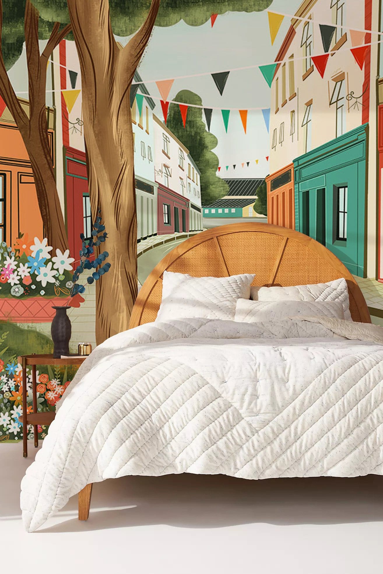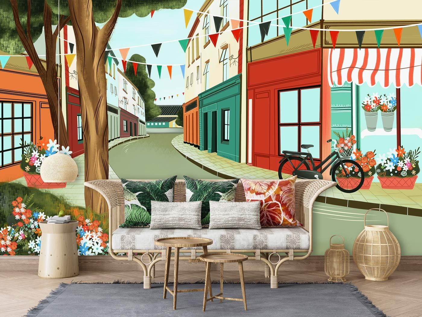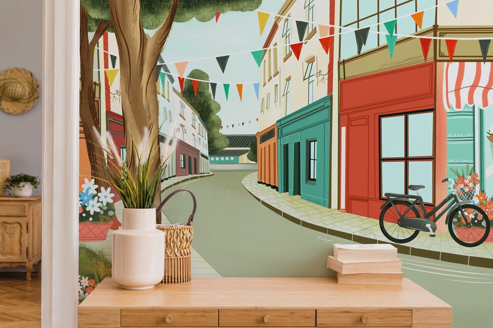 Donnez à votre chambre un look accrocheur avec cette murale de papier peint de rue vide. Ce papier peint peint à la main avec une rue calme et paisible dans un style moderne coloré pimentera sûrement vos chambres. Le portrait crée également un effet 3D visuellement qui élargira votre espace de manière sophistiquée. Fond d'écran idéal pour le salon, le salon, le couloir ou même la salle des enfants.