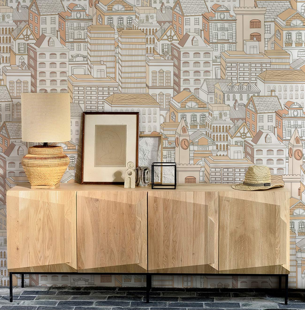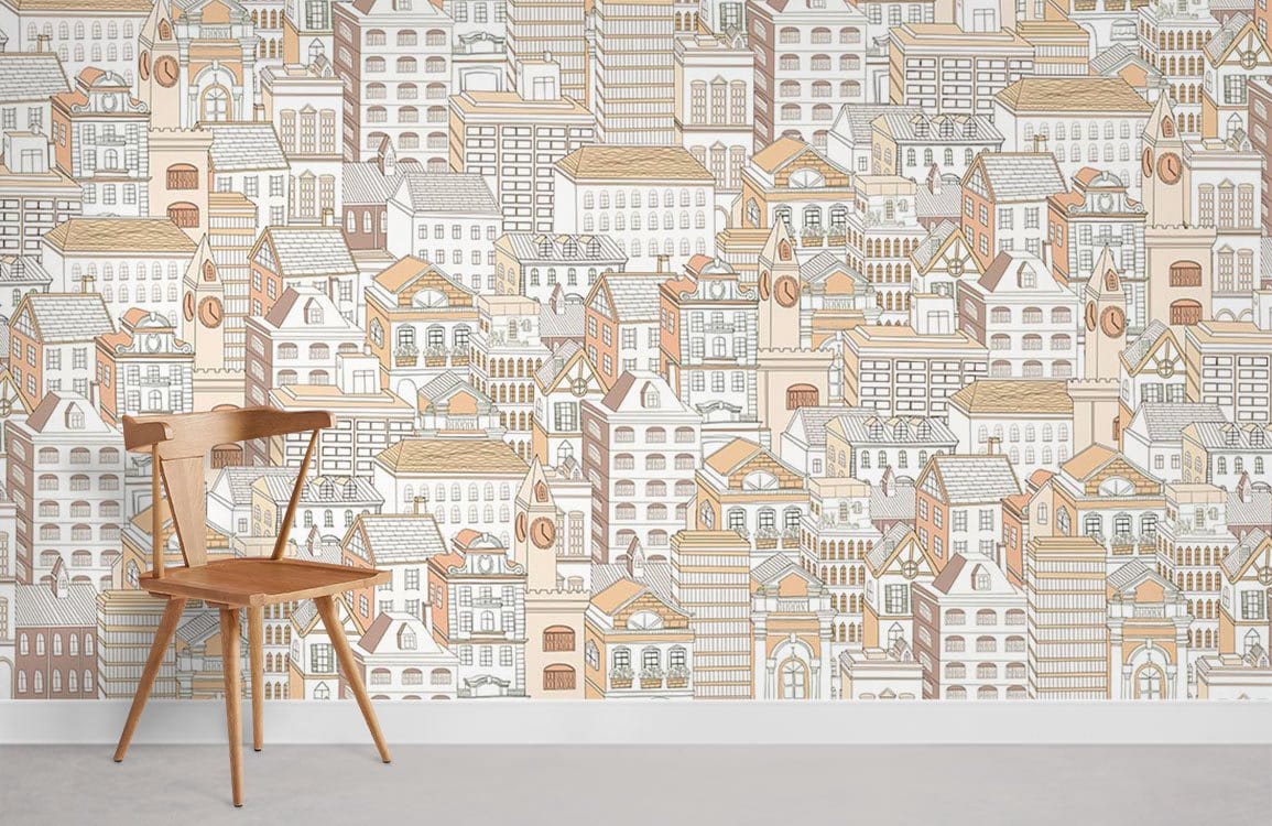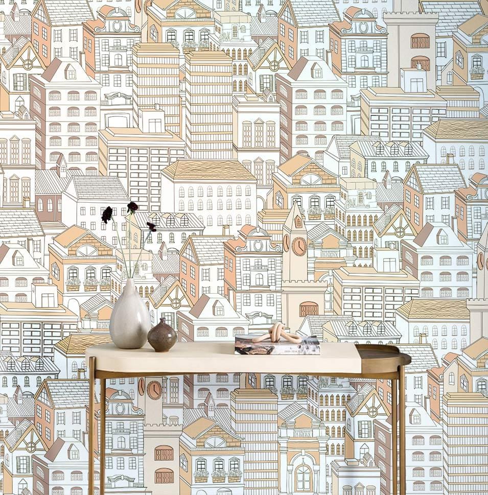 Apportez une ambiance spectaculaire à votre espace avec cette ligne de dessin de ligne et des bâtiments portrait du papier peint mural. L'œuvre créée en orange & amp; White apporte la simplicité et le lieu moderne au design. Utilisez-le comme mur de caractéristiques dans votre chambre avec des meubles de votre choix car les décors blancs sont parfaits à s'associer à toute la décoration de la maison.