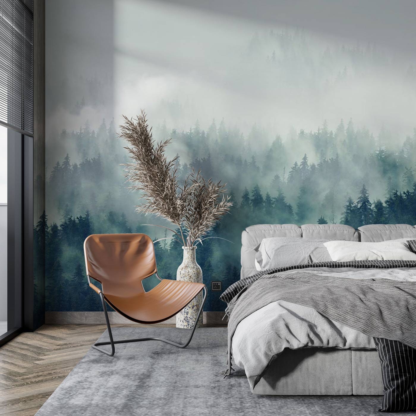Notre papier peint de forêt brumeuse transformera votre pièce en une beauté naturelle. Installez ce papier peint forêt sur votre lieu de travail ou n'importe où chez vous ! Avec des bleus aussi profonds et verdâtres, choisissez un décor avec des nuances similaires. Choisissez des pièces d'accent blanches pour refléter les tons de cette peinture murale d'arbre. S'il est utilisé comme papier peint de cuisine, choisissez des éléments de cuisine blancs et peignez le reste des murs dans une nuance de bleu.