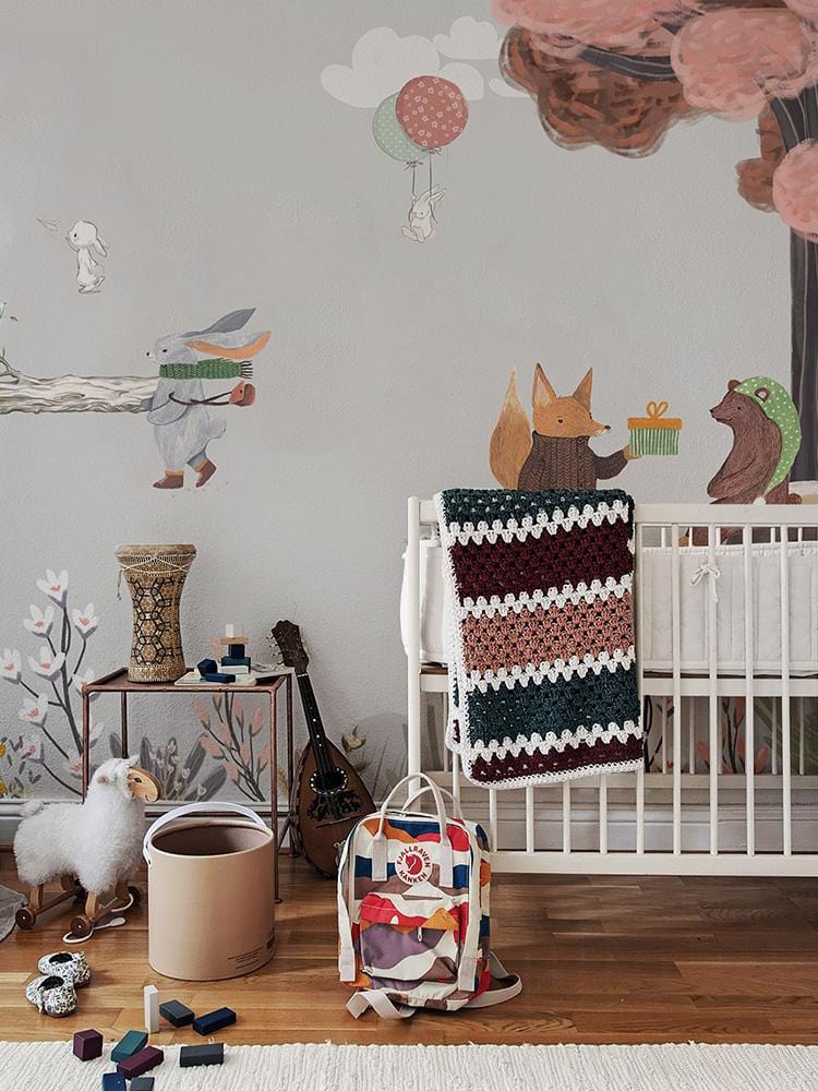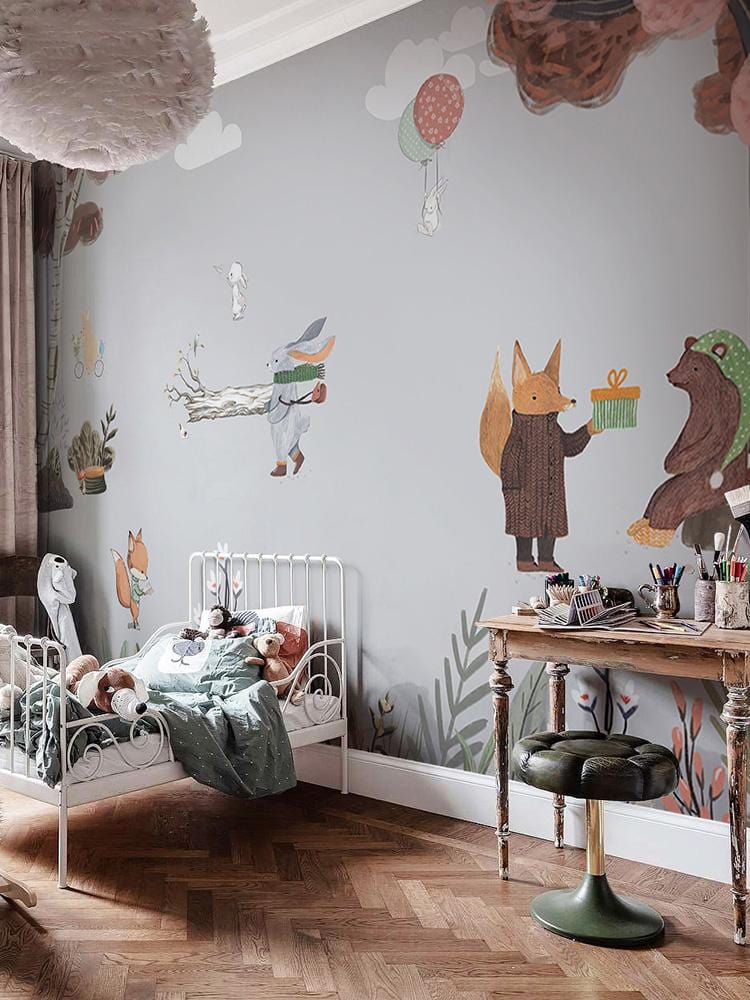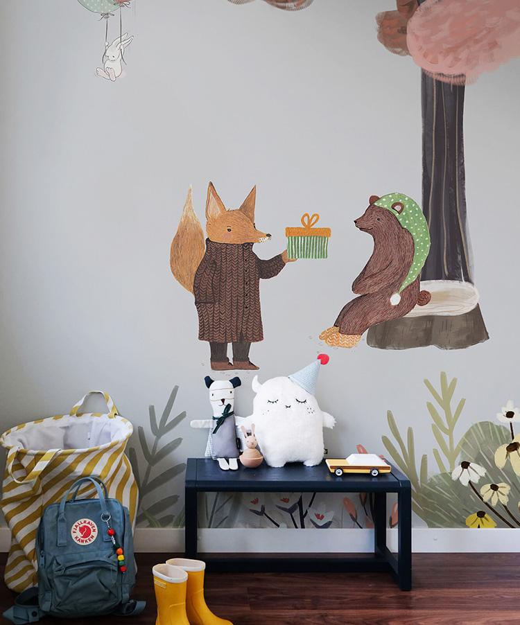 Il existe de nombreux animaux de la forêt mignons tels que des renards, des lapins et des ours. Ce revêtement mural animalier est un excellent choix pour un arrière-plan. Cette superbe image d'animaux s'amusant dans la forêt aurait fière allure dans la chambre ou la salle de jeux de votre enfant. Un rendu intéressant avec une ambiance naturelle et une décoration murale amusante que vos enfants adoreront.