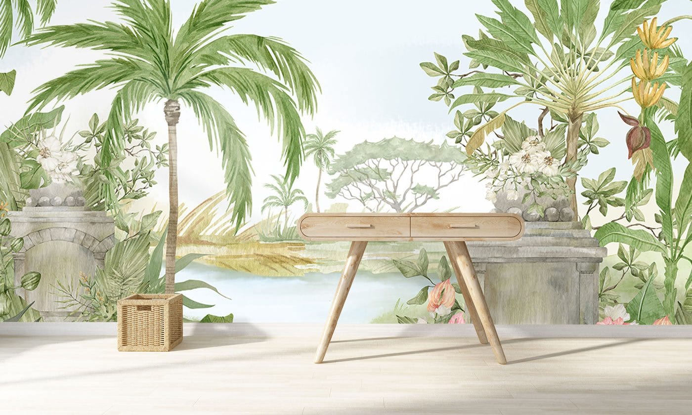 Avec ce papier peint aquarelle Palm House comme nouveau mur d'accent fantastique, vous pouvez ramener à la maison un magnifique jardin botanique. Cette murale en papier peint contemporaine donne l'idée d'une serre imposante, donnant à votre maison un nouveau look et rendant votre espace préféré plus ouvert et joyeux. Avec un mélange de tons vert foncé, les plantes peintes semblent saines, évoquant une sensation de vitalité et de luminosité dans votre espace.