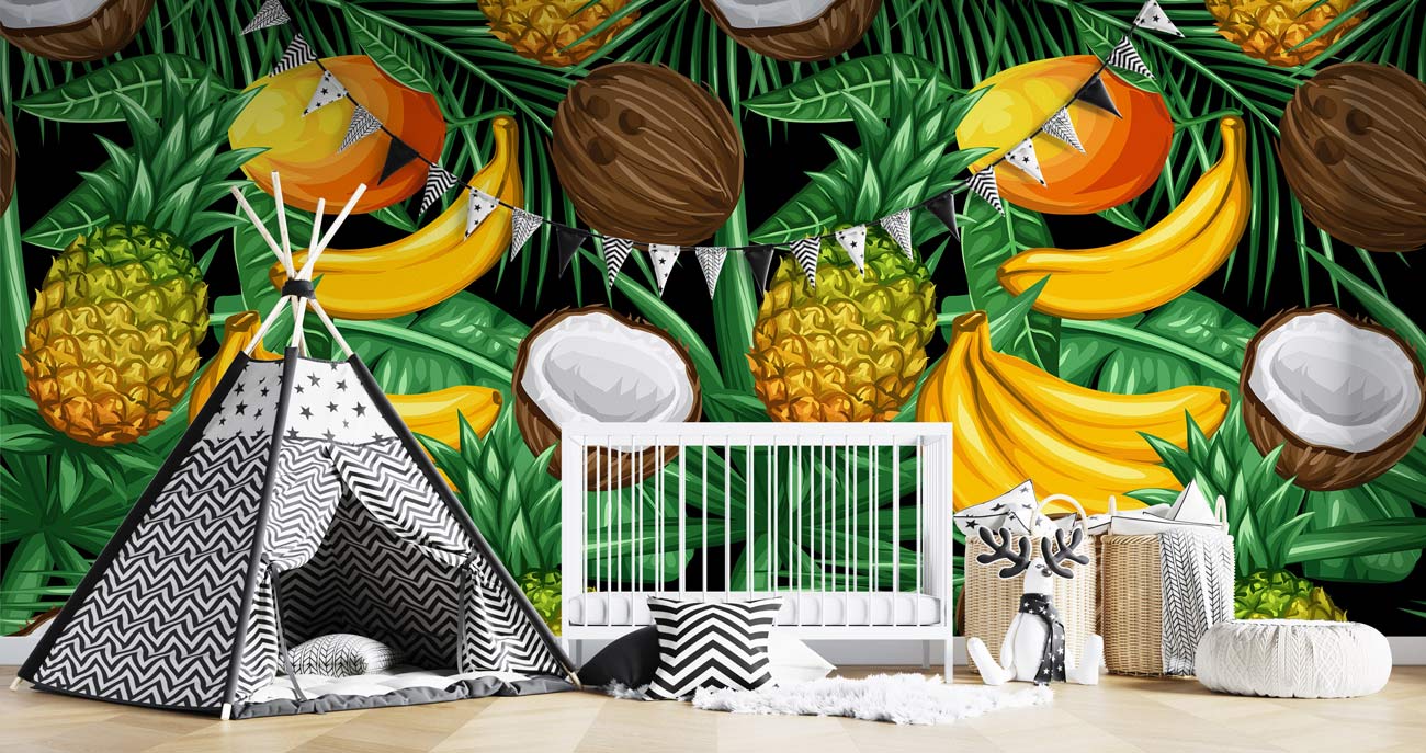 Notre papier peint mural Mixture Fruits est un excellent choix pour embellir votre salon, votre chambre ou votre bureau. Avec son imprimé de fruits mélangés, dont des bananes, des ananas, des mangues et des noix de coco, sur fond de feuilles vertes et de noir uni, ce papier peint mural donnera à n'importe quel espace un goût d'été ! Ce design peut rafraîchir la décoration de votre maison tout en créant une atmosphère plus élégante et romantique. Facile à accrocher, cette décoration murale sera un ajout élégant à votre maison, votre entreprise ou votre salle de jeux.