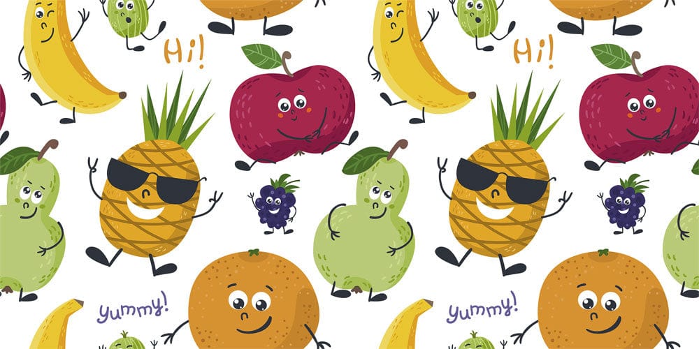 Apportez un sourire heureux à votre maison avec ce papier peint mural Happy Fruits ! Avec ses illustrations lumineuses de fruits aux couleurs vives, ce motif ajoutera une touche de couleur joyeuse à n'importe quelle pièce. Avec le style multicolore et tendance d'ananas, de bananes, de raisins, d'oranges, de pastèques et de poires souriants, vous pouvez créer une déclaration ludique dans la chambre de vos enfants et la salle de jeux. Transformez votre maison en un endroit joyeux avec ce papier peint mural pour enfants dès maintenant !