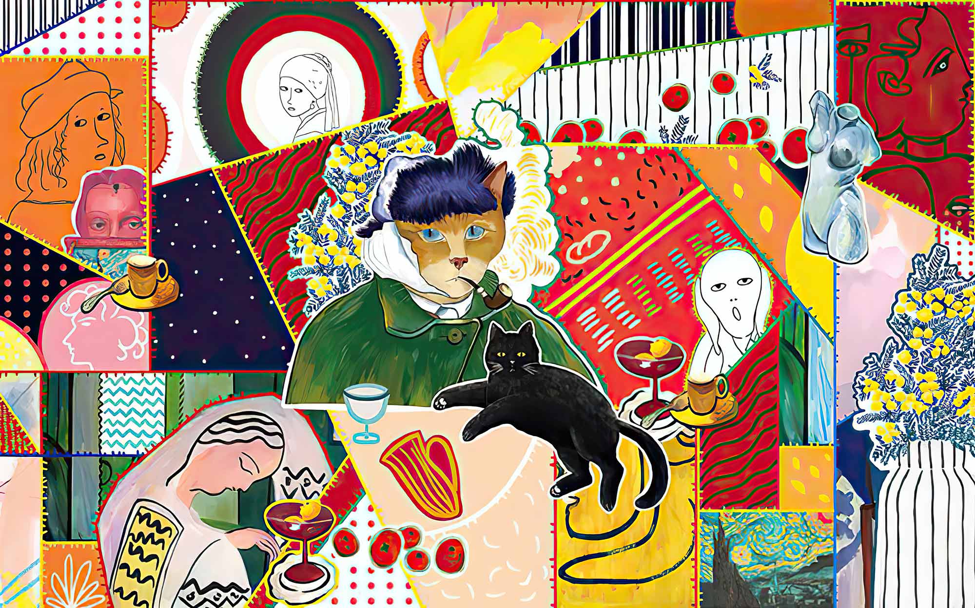 Transformez votre mur uni en quelque chose d'unique et de saisissant avec ce papier peint mural graffiti d'art. Les nombreux chefs-d'œuvre célèbres de l'art inclus dans cette peinture vous donnent un fort impact visuel comme si vous visitiez un musée d'art moderne. Décoration murale idéale dans votre chambre, salon et couloir.