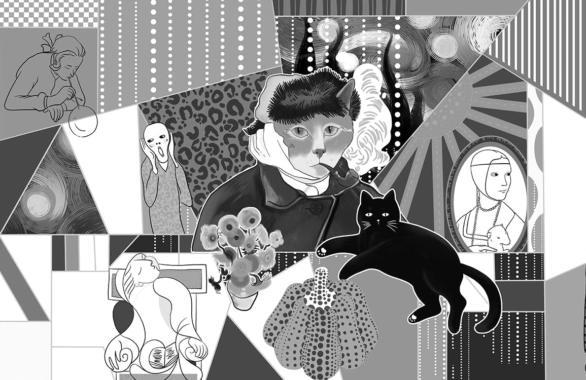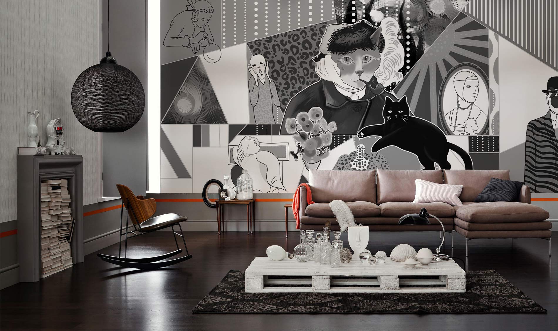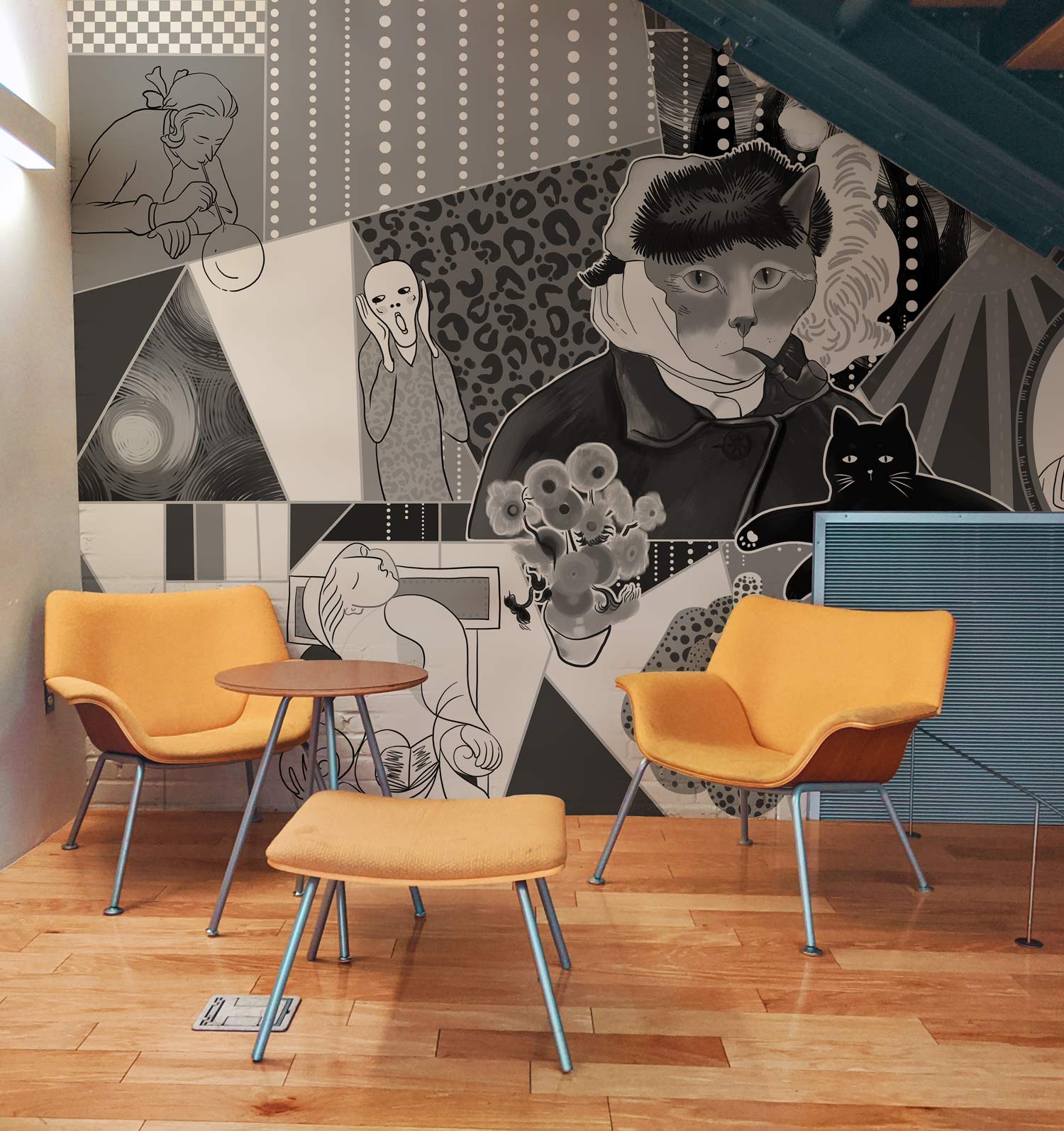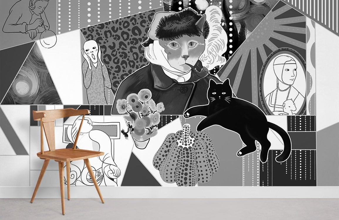 Transformez votre mur ordinaire en quelque chose d'unique et frappant avec ce graffiti de papier peint d'art. Les nombreux chefs-d'œuvre célèbres de l'art sont inclus dans ce tableau vous donne un fort impact visuel comme si vous visitiez le musée d'art moderne. Décoration murale idéale dans votre chambre, salon et couloir.