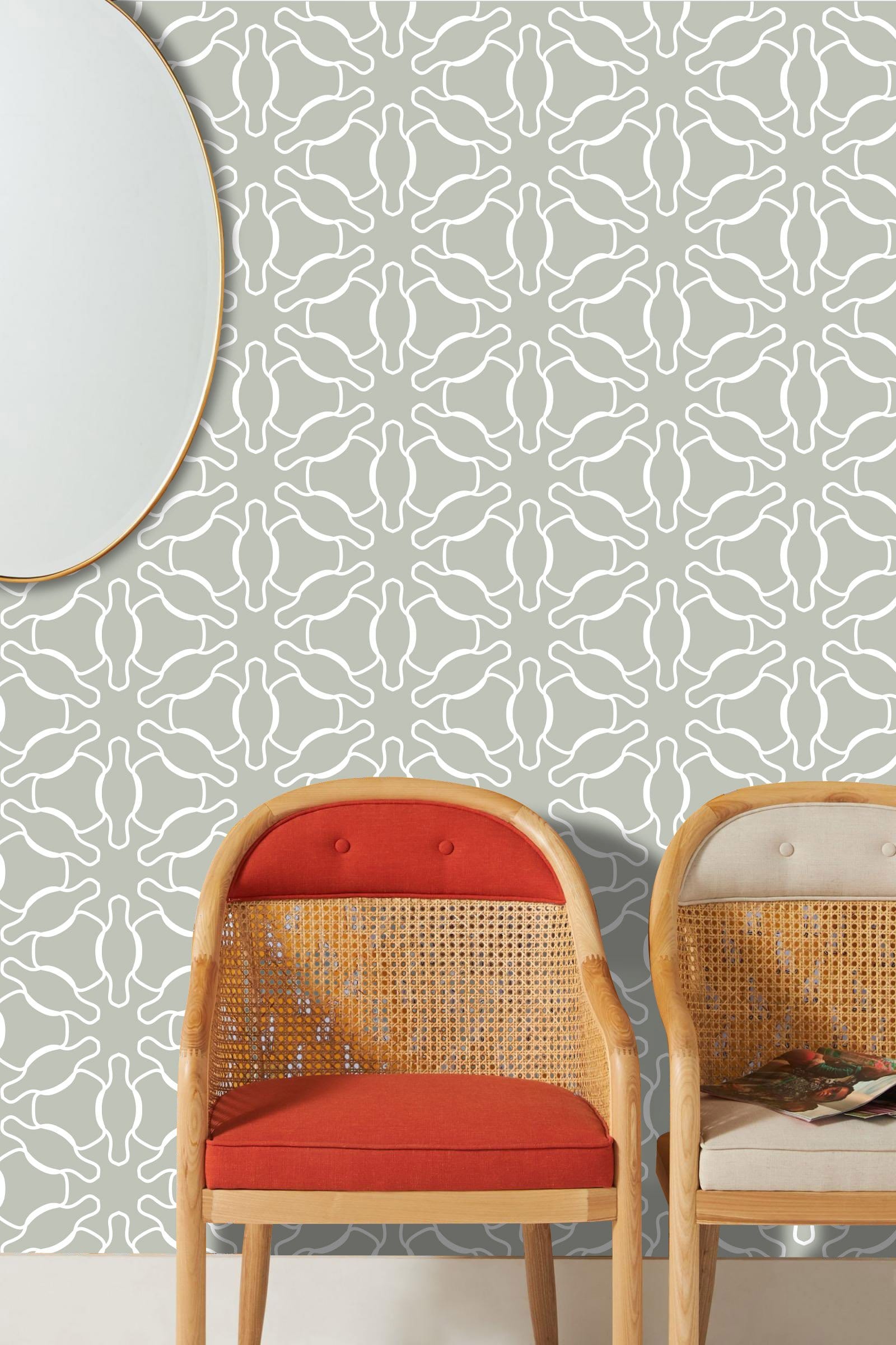 Créez un aspect merveilleusement expressif dans votre intérieur avec la peinture murale de motif de fleurs géométriques complexes. Les formes qui se chevauchent dans les lignes blanches en font un motif en forme de fleur avec un fond gris pastel domineront l'attention dans n'importe quelle pièce, ce qui en fait un excellent choix pour un mur de caractéristiques. Cette murale transformera votre espace avec un minimum d'effort.
