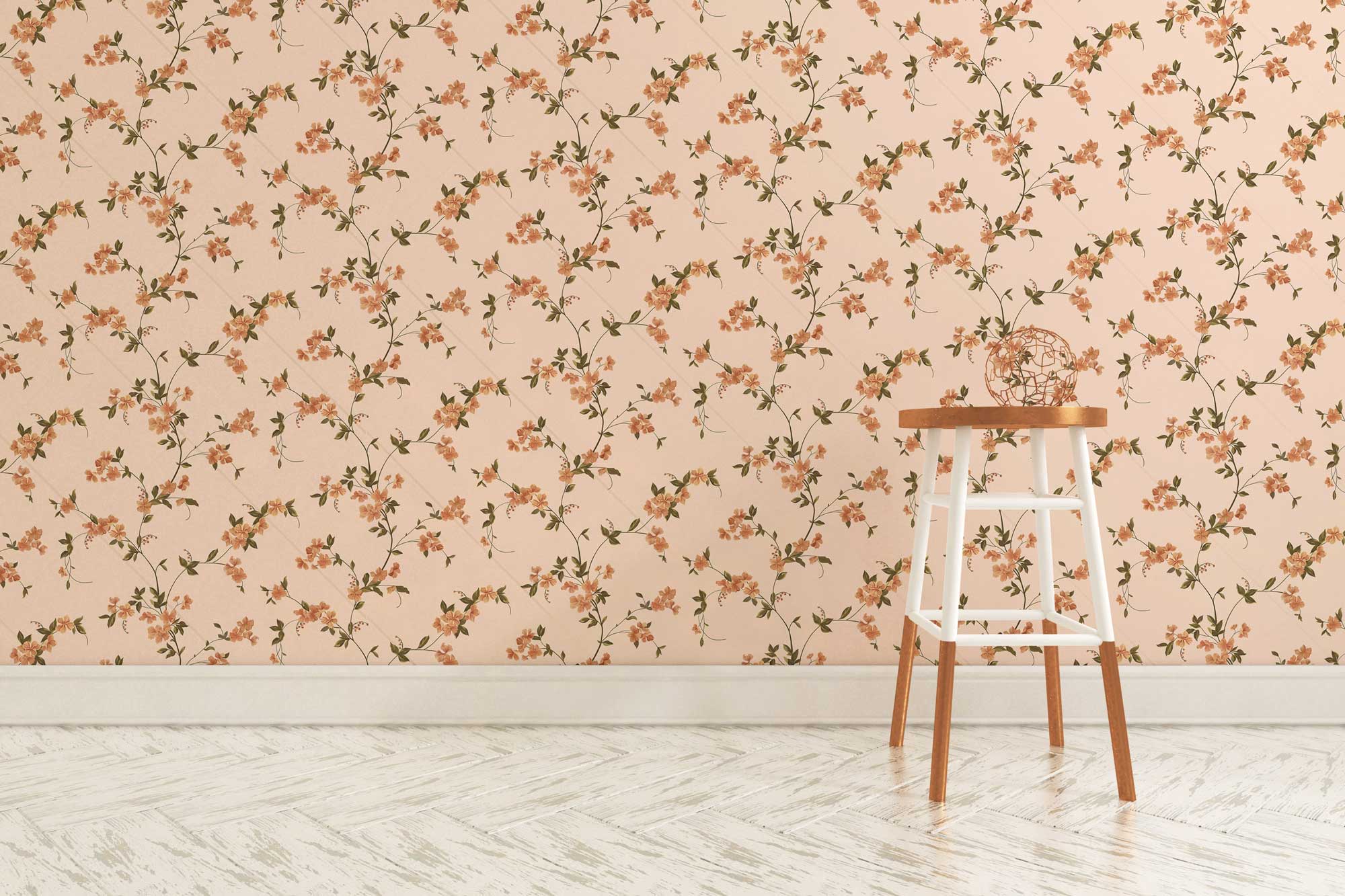 Embellissez votre maison avec cette peinture peint de motif de vigne de fleur répétée. Cette conception en arrière-plan de sable avec des vignes fleuries rampant sur vos murs ajoutera instantanément plus de fraîcheur à vos chambres. Associez-le avec des meubles traditionnels et des décors de maison pour un look charmant à vos intérieurs.