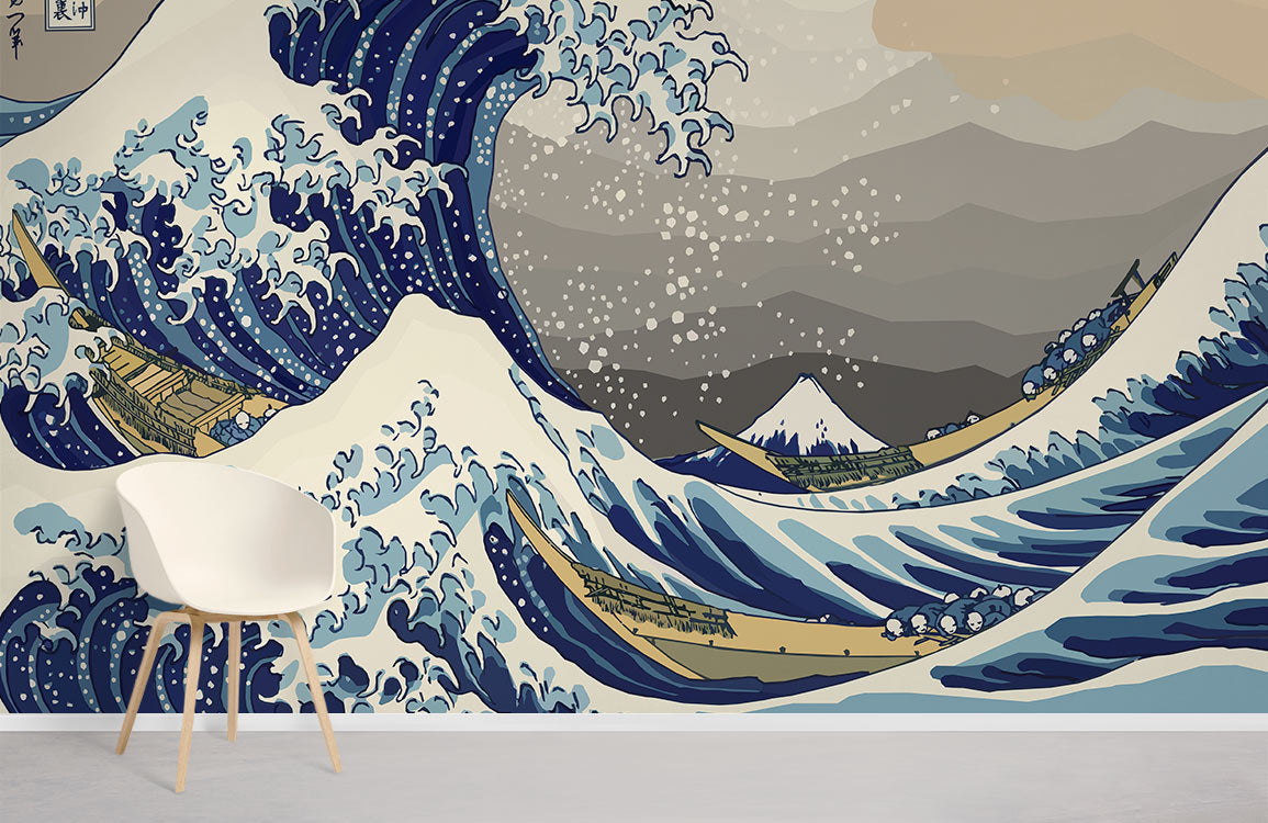 Il s'agit d'une peinture bien connue du peintre japonais Katsushika Hokusai du début du XIXe siècle. La peinture représente la mer agitée autour de Kanagawa, avec trois bateaux qui se battent dans les vagues, et les bateliers héroïques combattant une bataille passionnante et féroce avec la nature pour la survie, exprimant l'esprit intrépide des gens qui montent sur les vagues. Il s'agit d'une œuvre d'art parfaite qui peut être utilisée comme papier peint pour décorer votre mur et votre espace intérieur.