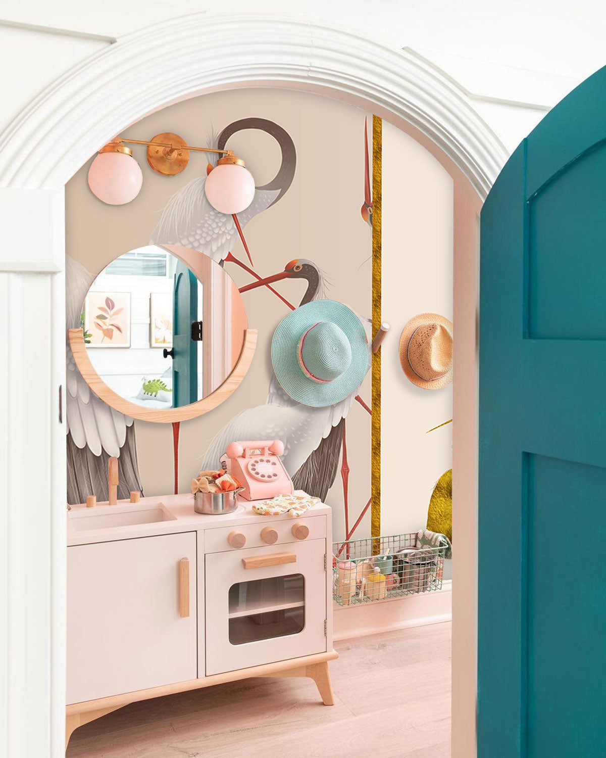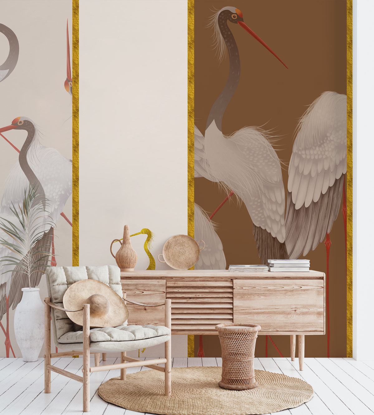 Apportez la beauté de la nature à l'intérieur avec ce papier peint mural représentant une grue à couronne rouge. Soigneusement détaillé pour imiter les fins coups de pinceau que l'on trouve dans les impressions à l'encre japonaise traditionnelle, ce papier peint mural au design étonnant apportera la tranquillité du Japon à votre maison. Les couleurs douces et apaisantes du blanc et la nuance audacieuse et vive du rose avec des images d'oiseaux simples sont parfaites pour les chambres à coucher ou les salons. Ce design mettra instantanément en valeur le symbole de la longue vie, de la bonne fortune et de la paix dans de nombreuses cultures asiatiques, directement sur vos murs, en un rien de temps et sans souci.