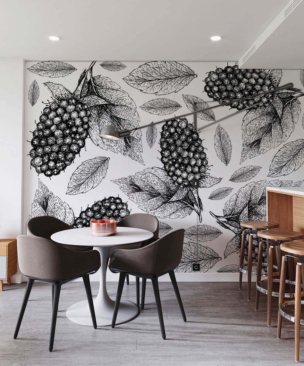 Cet adorable motif de mûre vous fera craquer au premier regard avec notre papier peint mural Mûre lignée. Une adorable peinture murale représentant des myrtilles ornant une branche dessinée à la main, ce papier peint est un moyen idéal d'ajouter de l'intérêt et de la couleur à n'importe quelle pièce de votre maison ou de votre bureau. Que vous cherchiez à créer une touche de couleur subtile ou un point focal audacieux, cette décoration murale s'adaptera à n'importe quel espace tout en vous apportant une sensation de fraîcheur à la maison.
