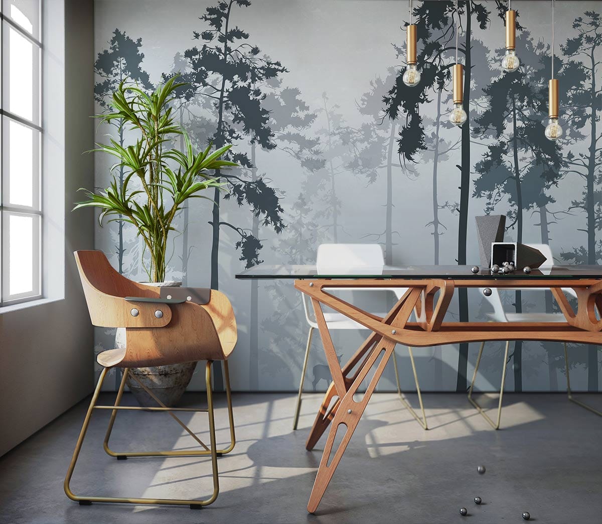 Entrez dans la forêt brumeuse avec ce papier peint de paysage naturel. Cette fresque murale capture la première scène de la forêt de bois le matin. Si vous souhaitez ajouter une sensation aérée à votre chambre ou à votre espace de vie, ce papier peint sera un choix parfait pour vous.