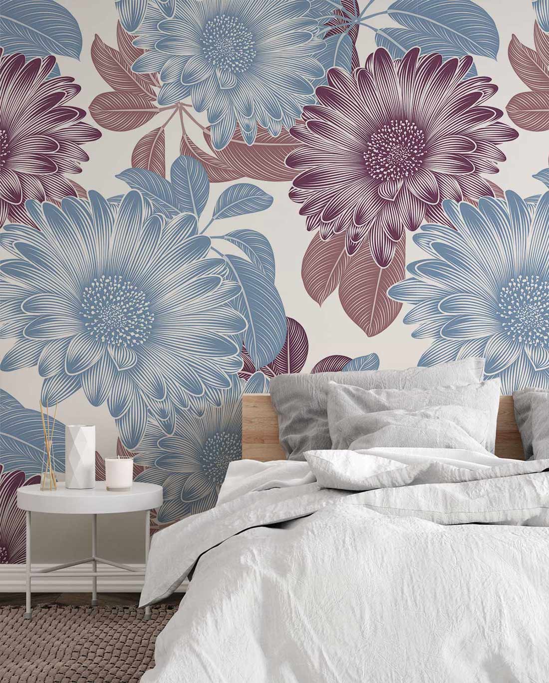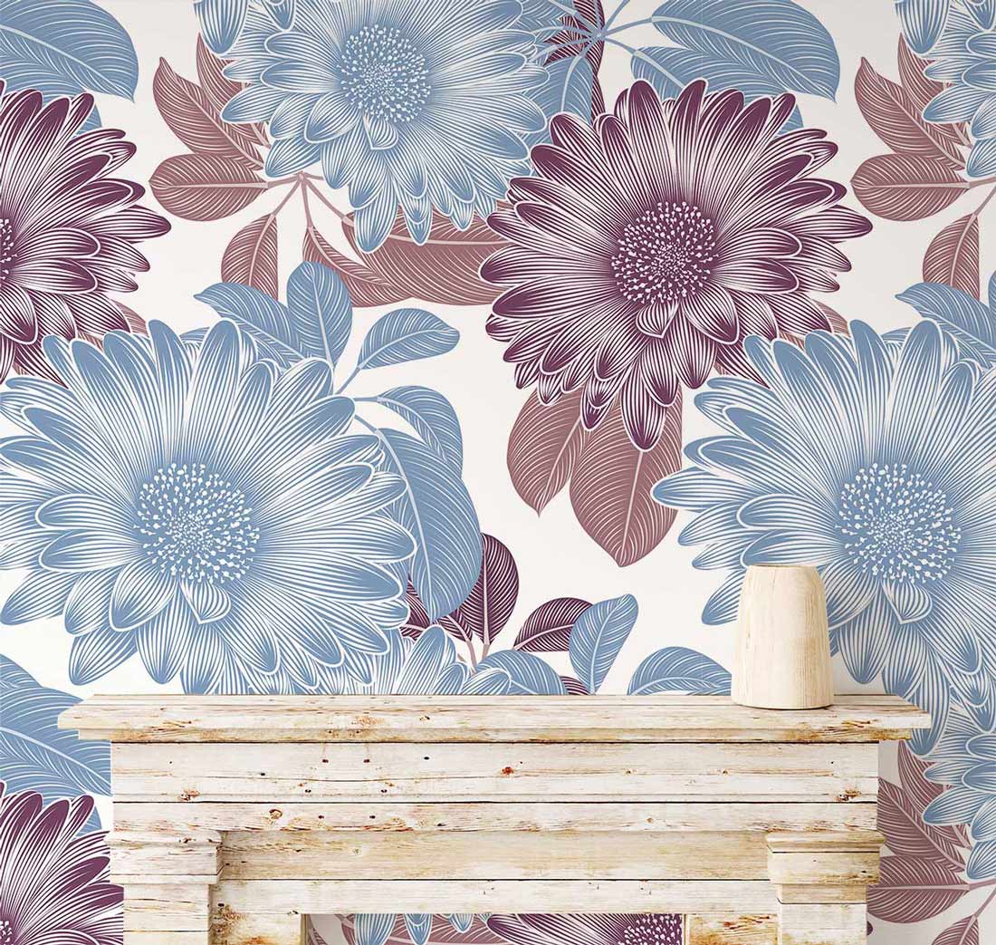 Avec sa palette de couleurs bleues et violettes frappantes, ce papier peint mural Mixture Daisy apporte une touche subtile de drame à utiliser dans les espaces de vie et les chambres à coucher. Imprimé avec un motif complexe dessiné à la main de marguerites et de feuilles colorées, notre papier peint floral peut faire entrer la nature dans votre maison en un rien de temps. Idéal pour n'importe quelle pièce, ses tons subtils et ses délicats motifs floraux créent une atmosphère élégante et détendue. Avec ses lignes blanches sur un motif floral rose et bleu, ce papier peint boho-chic est sûr de devenir votre nouvel accent préféré dans votre espace de vie.