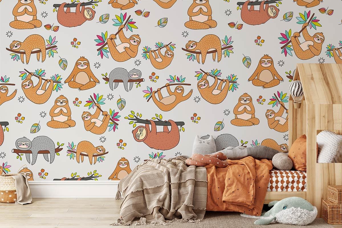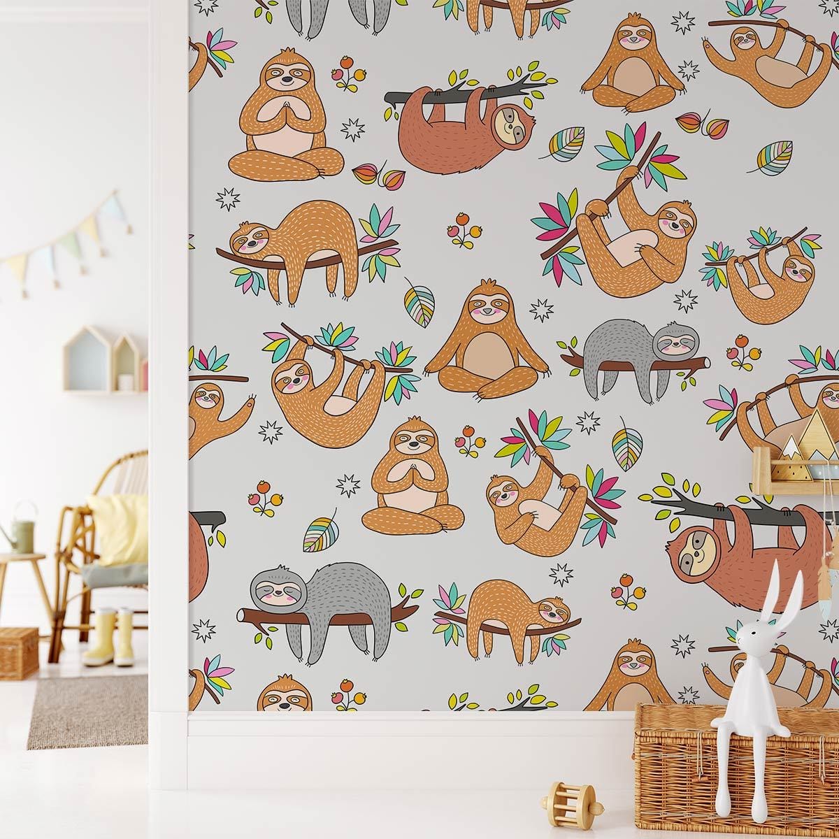 Faites sourire vos enfants avec notre jolie peinture pelletée. Ce papier peint est conçu dans des motifs répétés de mignon paresseux suspendus et se balançant sur les arbres, qui volera sûrement votre cœur. Apportez votre maison de fraîcheur et de touche naturelle avec cette murale murale. Il aura fière allure dans votre salon, votre chambre, votre chambre d'enfants et votre crèche.