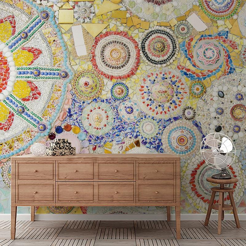 Transformez votre pièce en un espace visuellement attrayant avec ce papier peint de bijoux. Cette fresque murale de pierres précieuses et de cailloux colorés ajoutera sûrement un look magnifique à n'importe quel espace. Ce papier peint ressemble à la véritable feuille de bijoux époustouflants qui illuminent votre espace. Utilisez cette œuvre d'art élaborée pour animer vos murs comme une pièce maîtresse dans les ruelles de vos maisons.