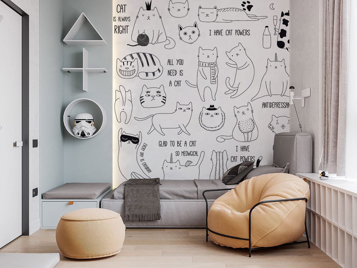 Notre papier peint mural blanc à motif de chat est une façon vivante et colorée d'égayer n'importe quelle pièce de votre maison. Ce papier peint moderne représente d'adorables chats dans diverses humeurs et attitudes amusantes, ce qui le rend idéal pour les chambres d'enfants ! Ce papier peint animalier, qui se présente sous la forme d'un simple jeu de couleurs noir et blanc, ne manquera pas d'illuminer n'importe quelle pièce de votre maison ou de votre bureau, et vous pourrez profiter de nombreuses années d'une vie formidable avec les chats !