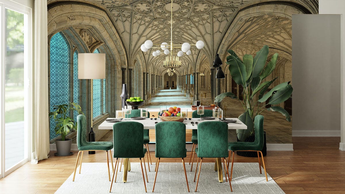 Ce papier peint mural montre le site 3D de l'intérieur de la cathédrale. L'atmosphère ici est paisible et confortable. Les bougies blanches et la cathédrale spacieuse rendent ce site plus tranquille. Vous pouvez installer ce papier peint panoramique dans votre salon, votre bureau à domicile et votre salle à manger. Ainsi, l'espace de votre pièce peut être agrandi.