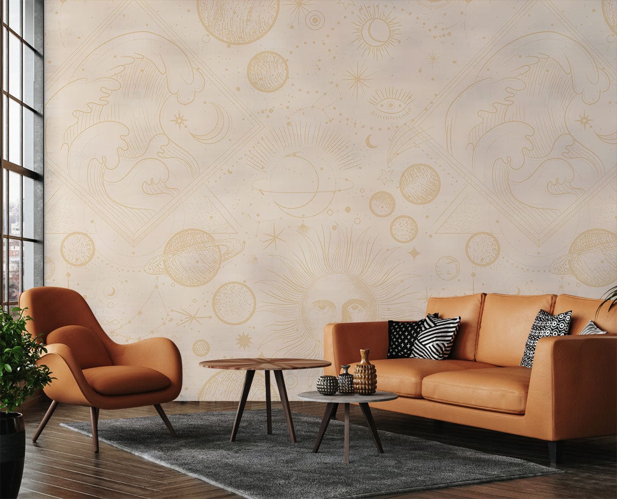 Partagez avec nous l'amour des horoscopes et la croyance des destins et du destin qui sont liés au soleil et aux étoiles, si vous faites partie de ceux qui aiment lire ce que disent les horoscopes, ce fond d'écran vous donnera une ambiance avec ce que vous l'amour chez toi. Ce papier peint mural astrologie et soleil dans la brume Le blanc à l'arrière-plan et les bruns dorés ajouteront un goût très unique et moderne à votre lieu avec un design très spécial qui impressionnera tous ceux qui le verront. Remplissez votre espace de ce que vous aimez et de ce qui vous rend heureux et profitez de moments éblouissants tout le temps