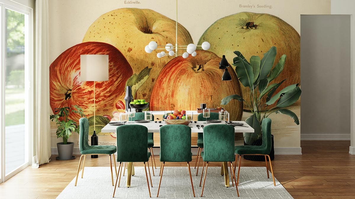 Vous êtes à la recherche d'un papier peint mural de cuisine sur le thème de la pomme ? Regardez notre papier peint mural Vintage Apples. Cette peinture murale d'inspiration vintage représente de grosses pommes juteuses qui apportent un aspect frais et unique à n'importe quel mur. Cette peinture murale est une véritable mine d'or pour les amateurs de style rétro, évoquant le charme d'antan avec sa palette de couleurs douces et ses motifs naïfs dessinés à la main. Ce superbe papier peint mural ajoutera une touche authentique à votre maison, la transformant instantanément en un lieu de vie vraiment charmant.
