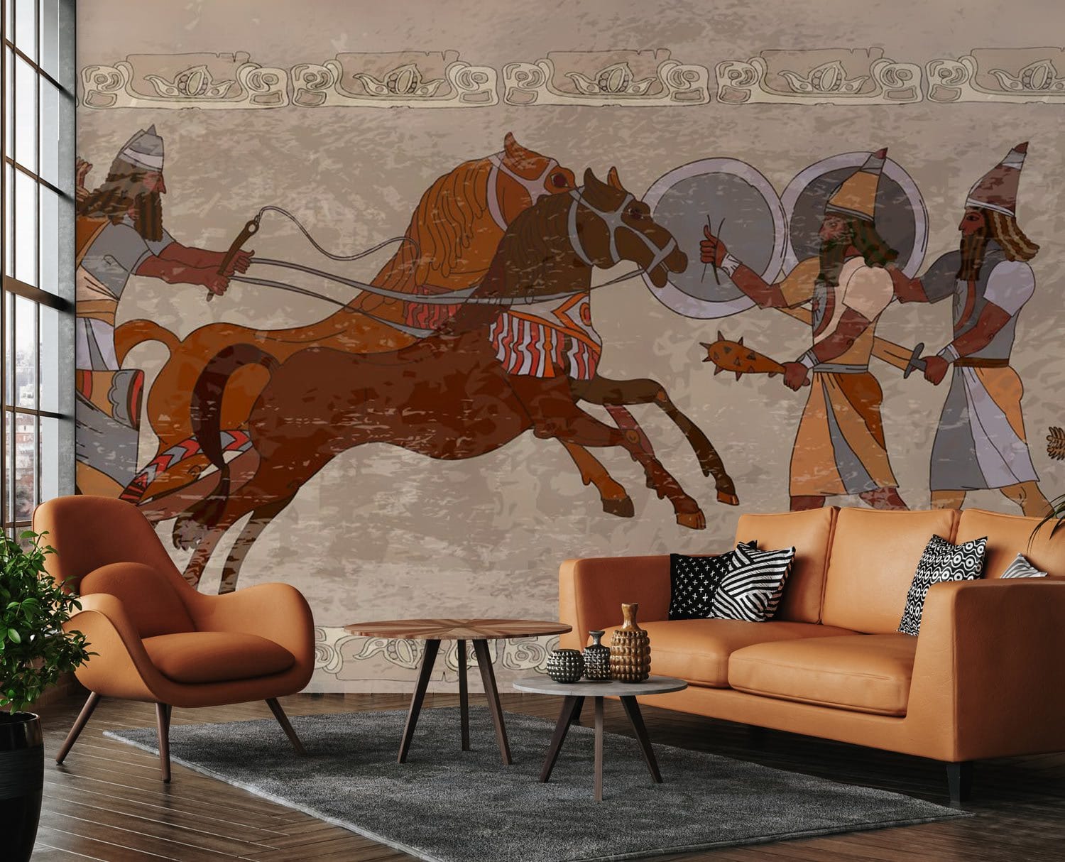 Ce papier peint mural rétro Soldats en négociation apporte la nostalgie et l'excitation du bon vieux temps. Avec l'image d'anciens soldats en train de négocier, il fait revivre le bon vieux temps de nos ancêtres avec un design rétro qui procure une sensation de calme et de sérénité de toute peinture murale. Ce papier peint vintage unique donnera un aspect nostalgique à votre maison et la mettra en valeur. C'est une excellente idée de décoration pour n'importe quelle pièce de votre maison, qu'il s'agisse de salles de bains, de salons, de chambres à coucher ou de portes d'entrée.