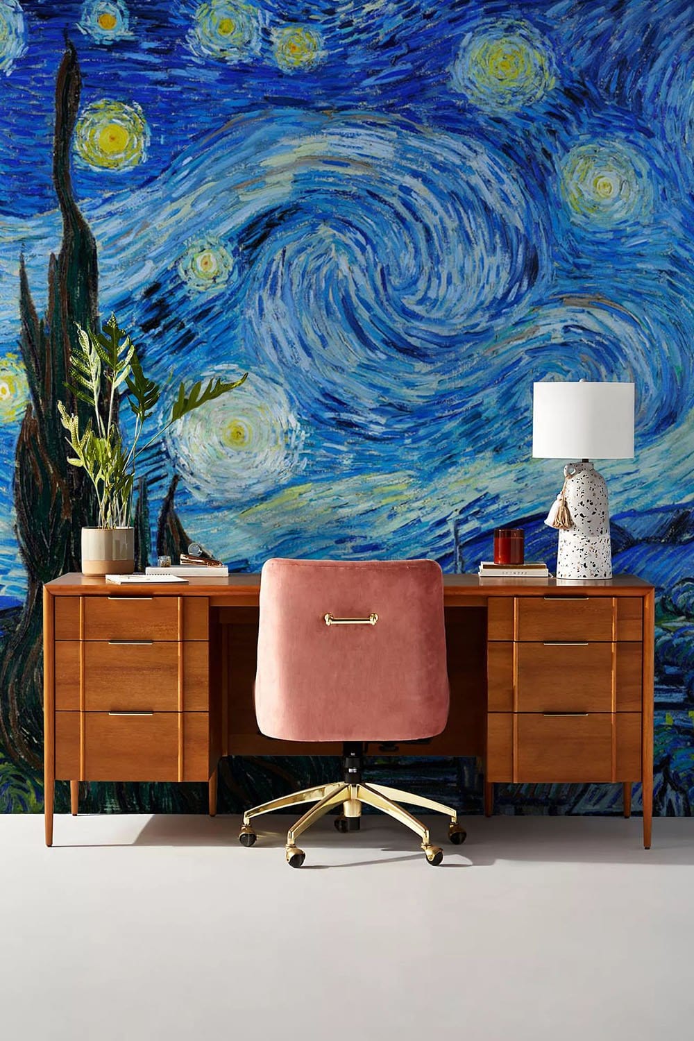 Pimentez votre espace avec l'œuvre d'art la plus précieuse de tous les temps avec cette peinture murale à l'huile. Ramenez à la maison le chef-d'œuvre le plus célèbre de Van Gogh, "La nuit étoilée", en 1889. Éclaboussez-vous de couleurs ? à vos intérieurs et transformez vos murs unis en œuvres d'art. Papier peint parfait pour les meubles et les décorations d'intérieur de style simple et moderne.