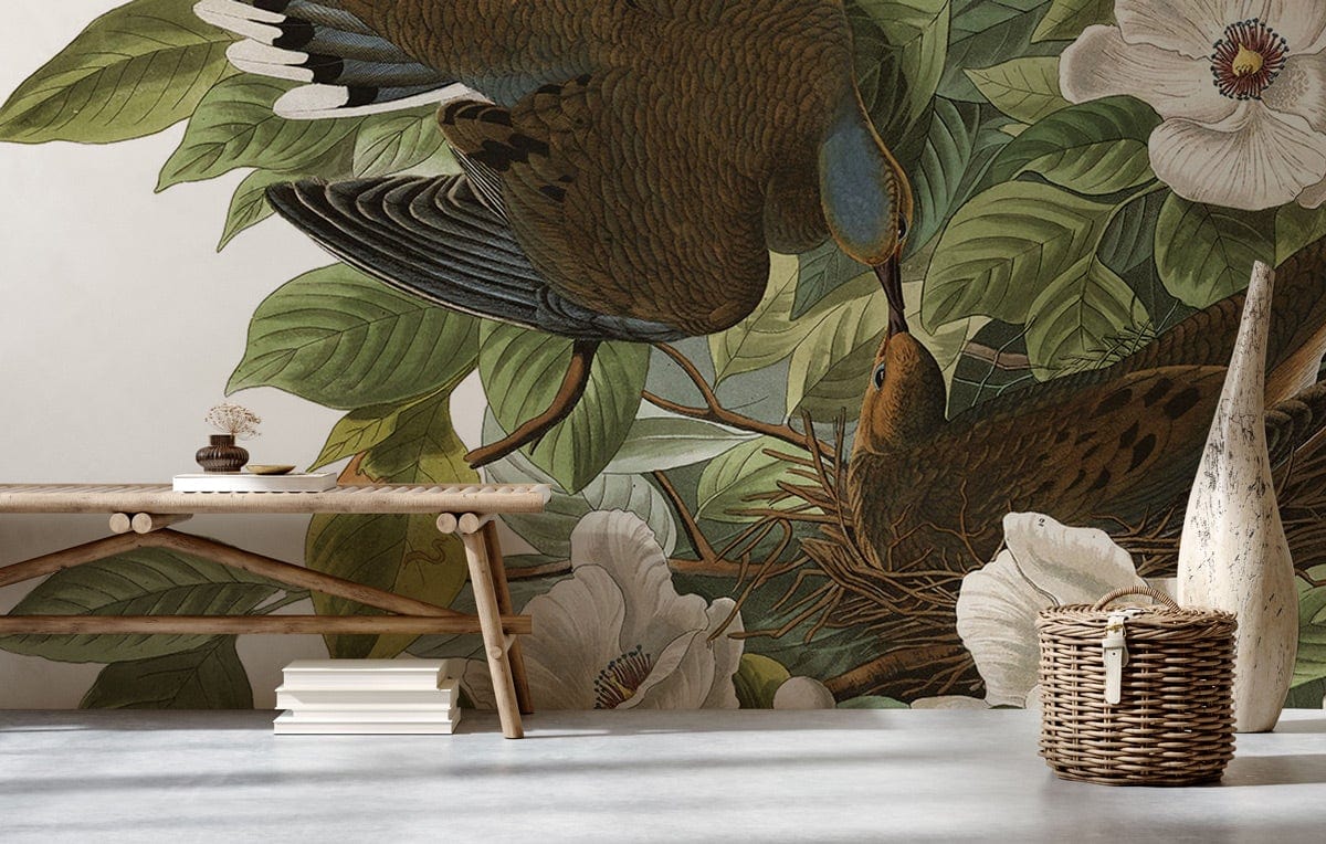 Si vous voulez qu'un décor mural de style élégant pimente votre espace, choisissez ce magnifique oiseau & amp; fond d'écran de fleurs mural.Férumant un gros oiseau nourrissant son bébé sur un grand arbre à fleurs, cette scène est en train de mentent le cœur et lui donnera une sensation animée et élégante dans votre espace intérieur. Pourquoi ne pas l'utiliser pour votre chambre, votre salon ou votre salle à manger et associez-le avec des décors de maison traditionnels ou modernes.