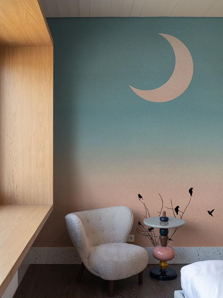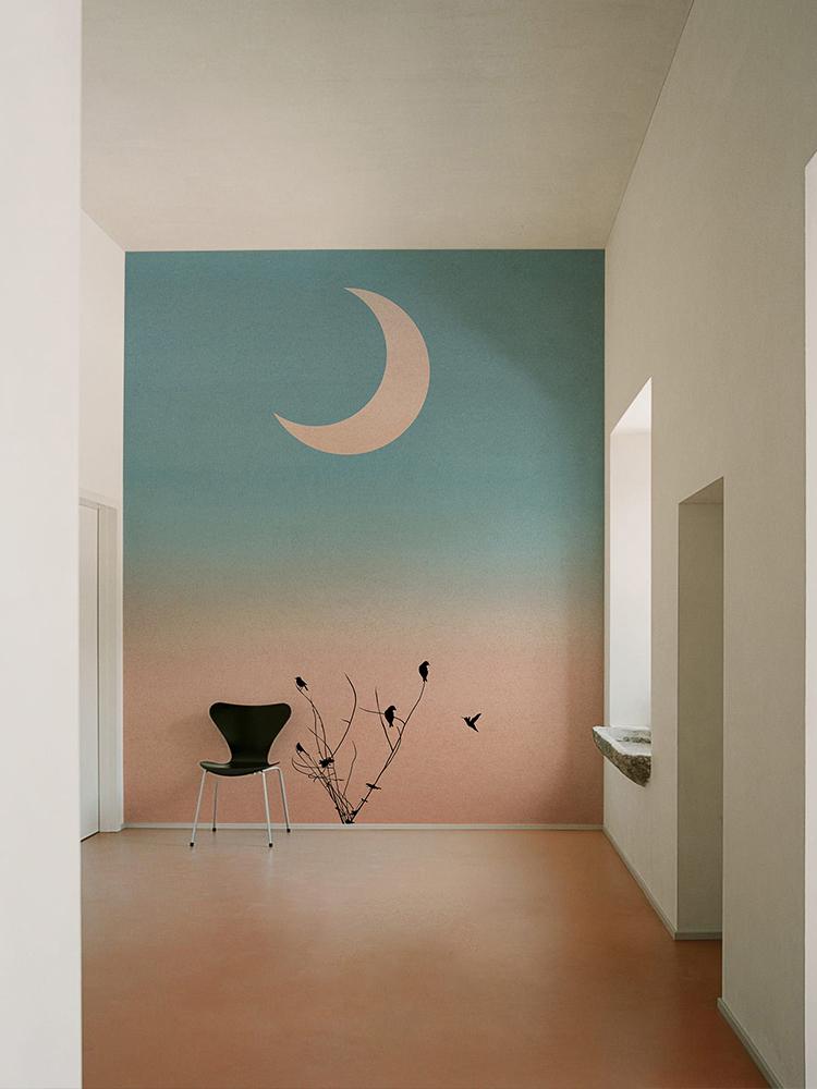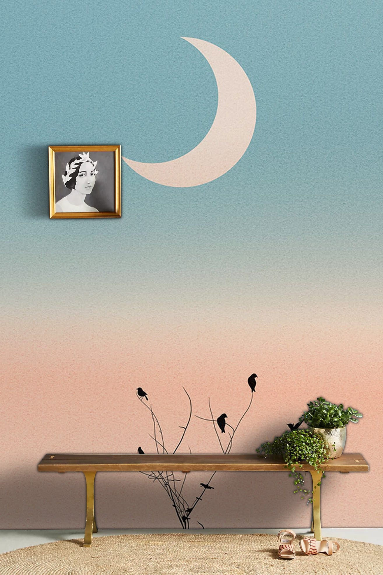 tombe amoureux de cette fresque peint au clair de lune ombre. Un papier peint polyvalent qui fonctionnera avec une gamme de pièces et de styles. Avec le clair de lune dispersant, le ciel passe progressivement du bleu doux à l'orange. Les couleurs rêveuses inciteront le spectateur à évoquer le calme et la relaxation. Pourquoi ne pas expérimenter avec ce beau fond d'écran dans votre chambre, votre salon et votre couloir pour rendre vos intérieurs superbes.