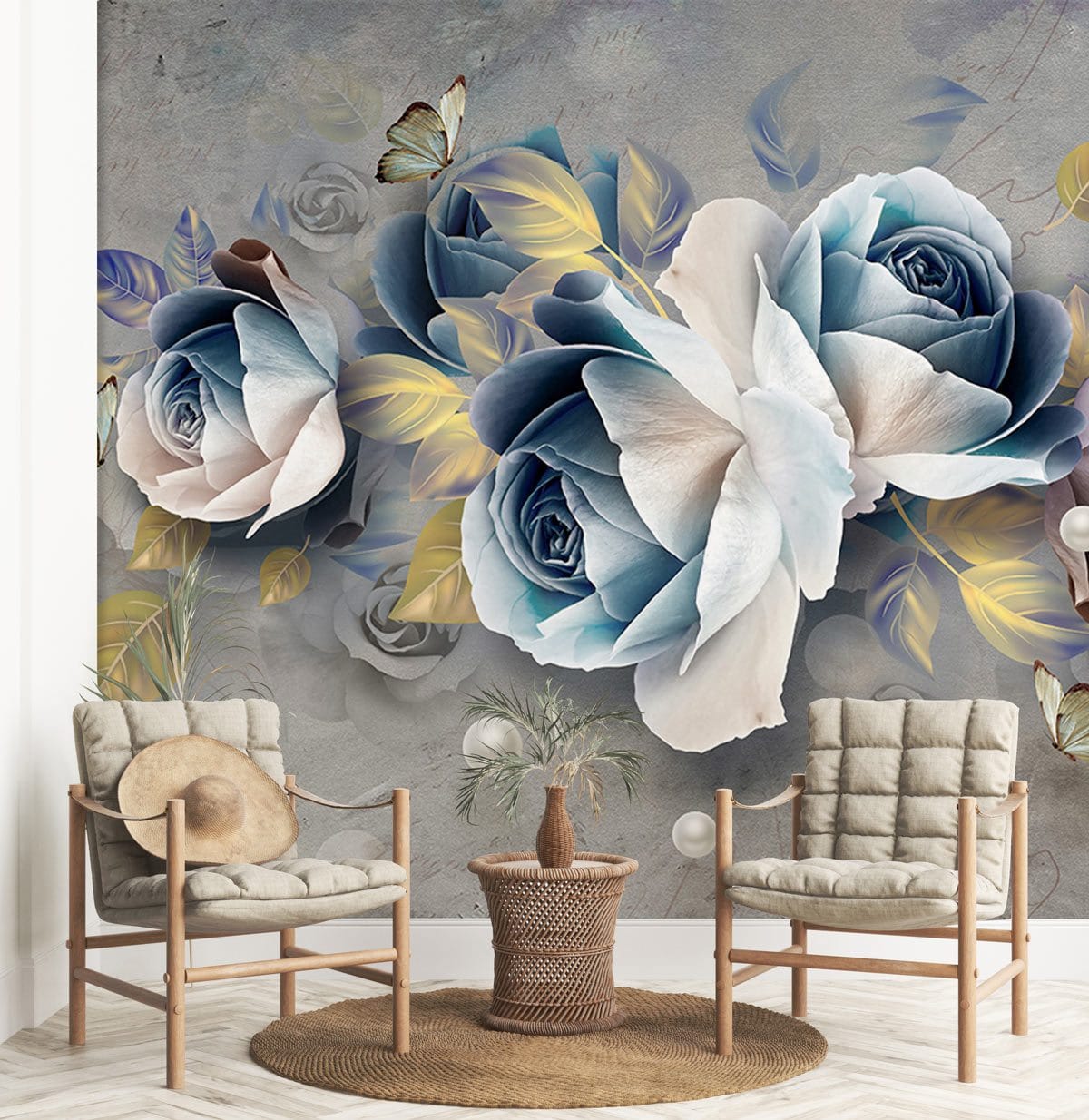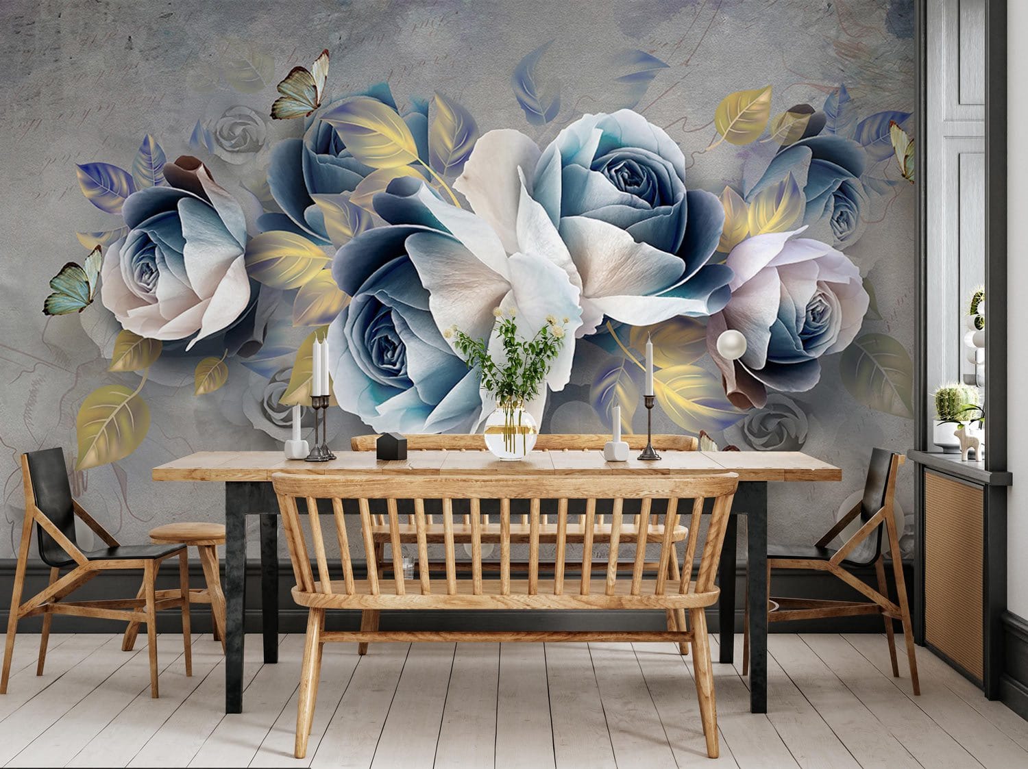 Créez un espace élégant pour votre maison avec notre papier peint élégant. Ce papier peint mural de roses blanches et grises crée un look vintage 3D qui est teinté et saturé de couleur d'encre bleue pour une sensation d'ombre sophistiquée. Si vous êtes amoureux des fleurs, n'hésitez pas ! Il s'agit d'une décoration murale florale parfaite qui s'agencera à votre salle de bain, chambre, salle à manger, salon, bureau à domicile et couloir.