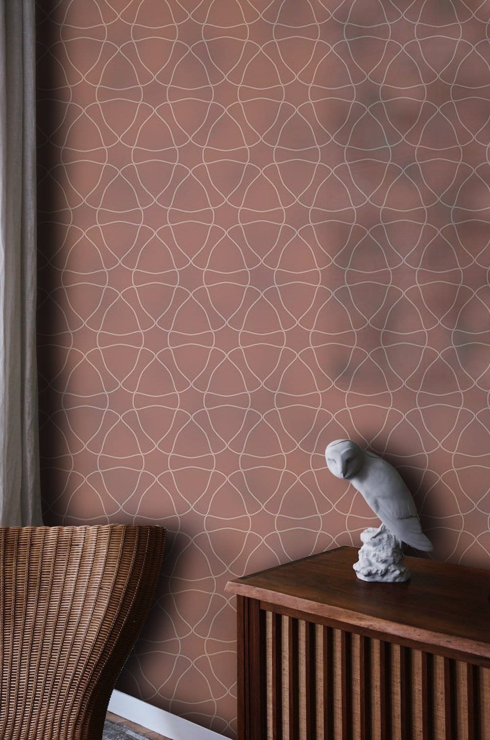 Créez un aspect merveilleusement expressif dans votre intérieur avec la fresque de papier peint à motif géométrique complexe. Les formes qui se chevauchent dans les lignes blanches en font un motif en forme de fleur avec un fond rouge pastel domineront l'attention dans n'importe quelle pièce, ce qui en fait un excellent choix pour un mur de caractéristiques. Cette murale transformera votre espace avec un minimum d'effort.