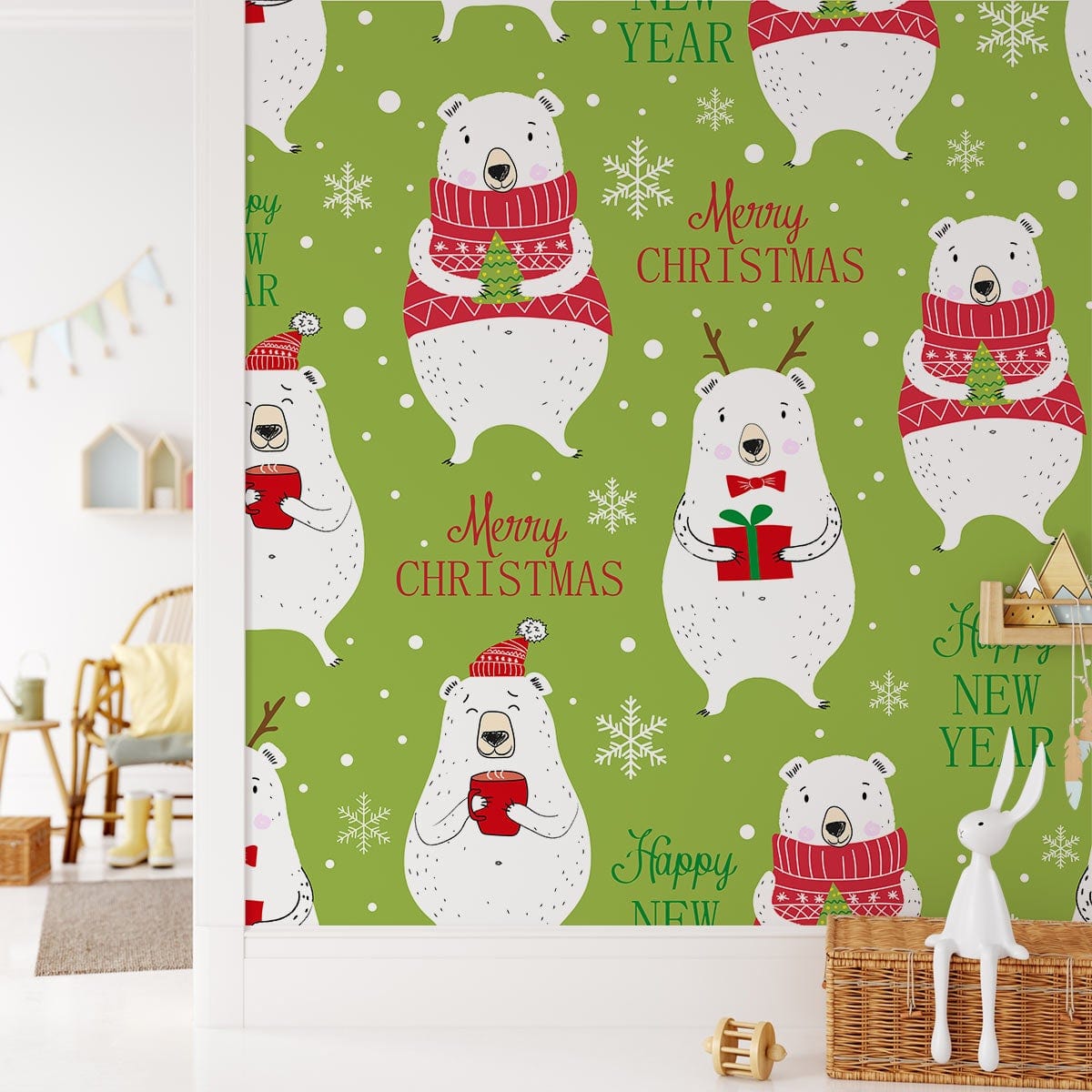 Christmas n'est pas seulement pour le Père Noël et ses cerfs, nos beaux ours donnent aussi des cadeaux. Profitez de la saison de Noël avec l'un des fonds d'écran muraux les plus heureux du Noël. Ce mignon ours blanc vous donnera ses cadeaux avec vous et célébrer cette année avec vous. Ne manquez pas notre papier peint verdâtre avec l'ours dans ses pulls rouges et les beaux chapeaux de Santaā €. Ce Ever Wallpaper changera toute l'ambiance dans votre maison et fera profiter de vos invités plus à votre place tout en mangeant des biscuits et en se donnant les cadeaux et en célébrant les émotions chaleureuses à la maison. Ne manquez pas le look avec des décorations de Noël et de belles lumières pour améliorer le niveau de joie et de bonheur.