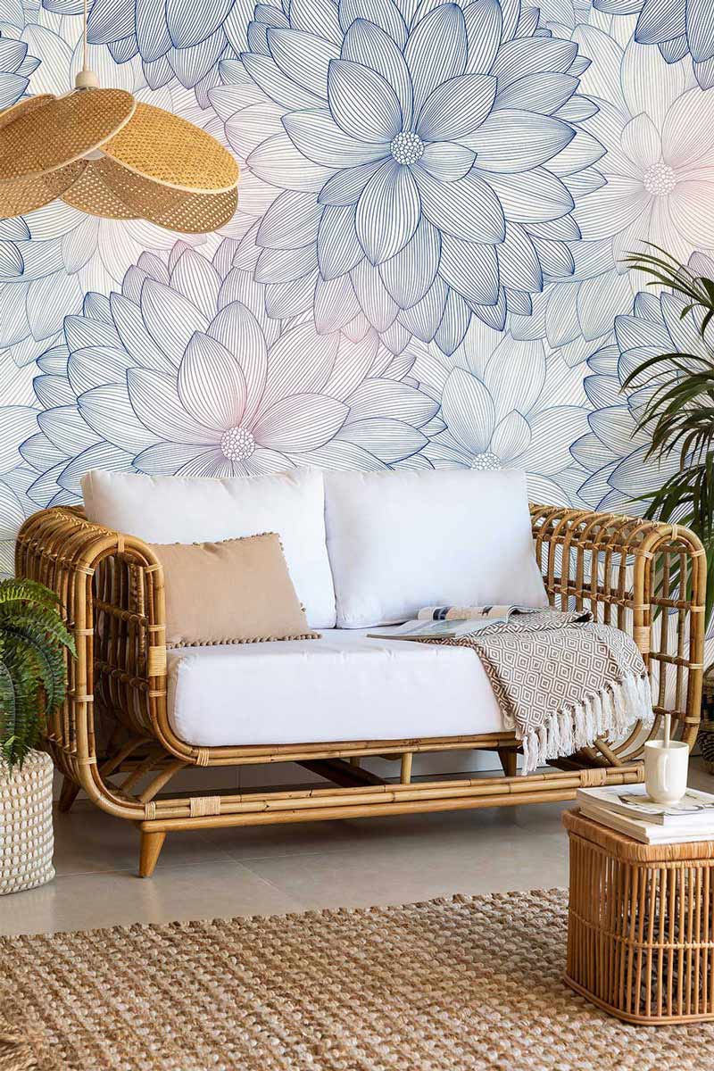 Décorez vos murs avec ce papier peint mural Paeonia Bloom, conçu avec des fleurs Paeonia simples mais élégantes dessinées en lignes bleues douces sur un fond blanc uni. Donnant à vos murs un style printanier, ce papier peint floral est le décor parfait pour les intérieurs naturels et tropicaux. Ajoutez ce papier peint mural à votre salon ou à votre chambre à coucher pour une belle pièce murale, ou utilisez-le comme décoration unique dans la chambre de vos enfants avec un point focal accrocheur.