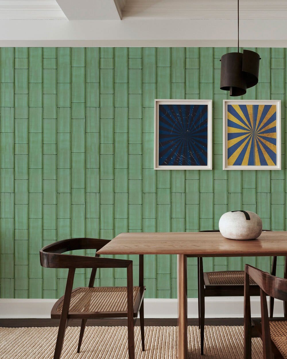 haut de gamme l'apparence de vos intérieurs avec cette murale de papier peint en panneau vert. La conception entière lui donne un look propre et confortable qui améliorera votre mur d'accent avec sa simple grâce. Utilisez-le dans votre chambre, salle de bain, salon, cuisine ou salle à manger et associez-le avec des meubles de couleur claire pour donner un aspect frais à votre espace.