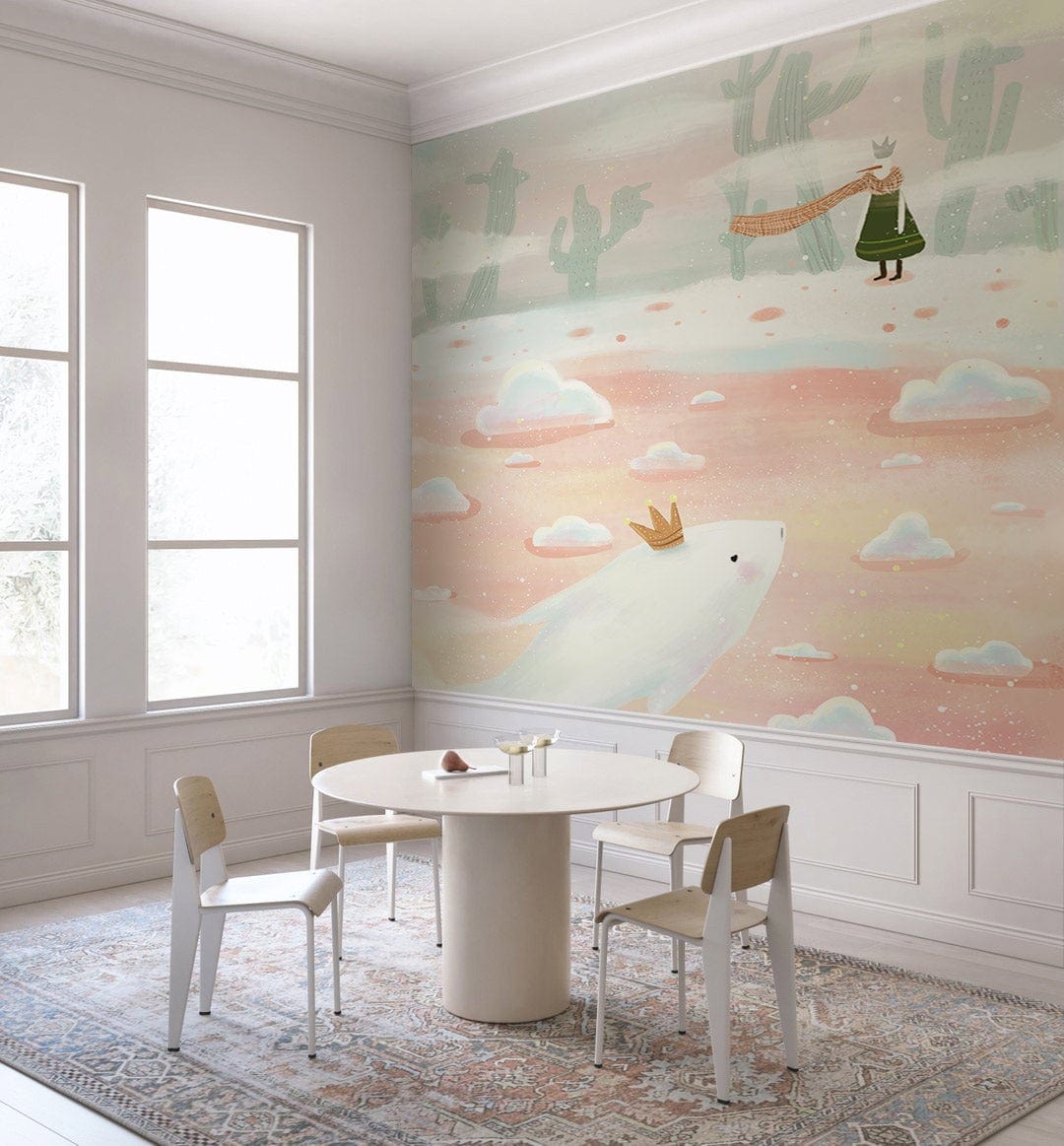Imaginez que vous faites partie d'un conte de fées, notre collection de papiers peints muraux vous emmènera dans un endroit différent. C'est un monde parallèle où les fées plongent parmi les nuages comme des barbes à papa. Et les cactus sont partout et ont l'air merveilleux comme des gratte-ciels. Ce joli papier peint mural donnera à votre chambre d'enfant un aspect vibrant et rêveur. Les couleurs sont si calmes et si légères et la palette de couleurs pastel fera paraître l'espace plus large. Les couleurs claires donnent des vibrations calmes et maintiennent l'ambiance de confort en permanence ! Assurez-vous d'utiliser de belles couleurs claires pour les rideaux et le tapis. Vous devrez utiliser un lit blanc cassé ou gris clair si vous souhaitez avoir cette peinture murale dans une chambre d'enfant.