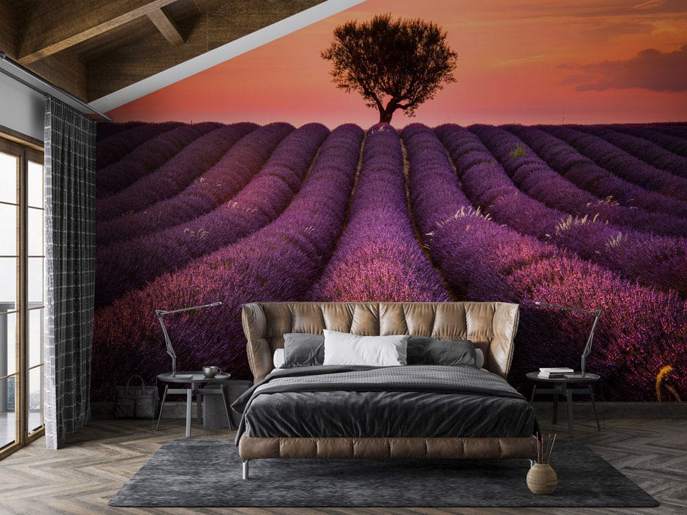 Ravissez vos sens avec une élégante décoration florale parfaite pour n'importe quelle pièce de votre maison ou de votre bureau. Le papier peint mural Lavender Fields présente un ensemble lumineux et magnifique de champs de lavande à flanc de colline sur fond de ciel rose. Ce papier peint mural donne l'illusion d'avoir le parfum des fleurs de lavande dans l'air. Pour une atmosphère chaleureuse et invitante, utilisez ce papier peint décoratif dans votre salle à manger ou votre cuisine pour pimenter votre intérieur et offrir une retraite paisible.