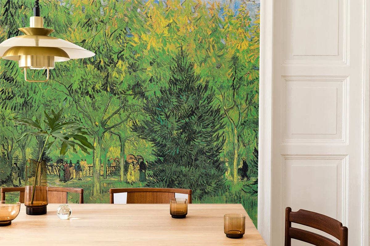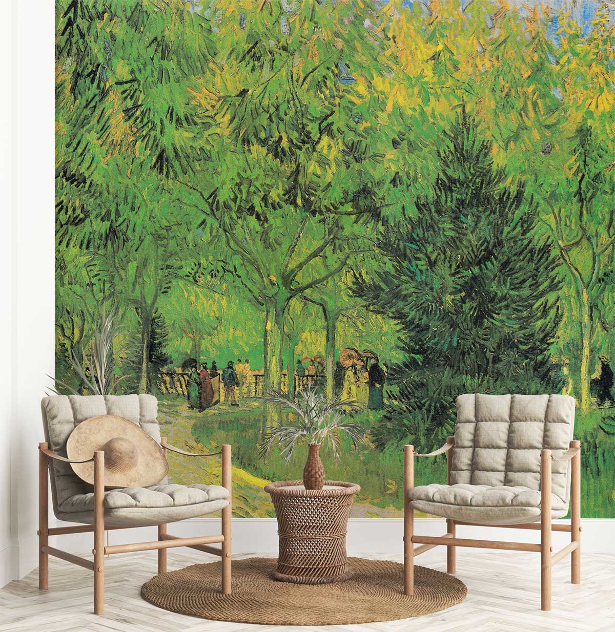 Illuminez votre espace de vie avec un papier peint mural Park Path. Cette peinture murale illustre une promenade animée le long d'un chemin urbain rempli de grands arbres verts. Une belle scène d'une promenade à travers les arbres et l'herbe par une journée ensoleillée, ce papier peint rempli de nature est sûr de créer une ambiance paisible et sereine dans tout espace de décoration. Les couleurs sourdes et la beauté naturelle de cette impression créent une atmosphère relaxante dans n'importe quel espace. Cette peinture murale est parfaite pour une salle familiale, un salon ou un coin repas.