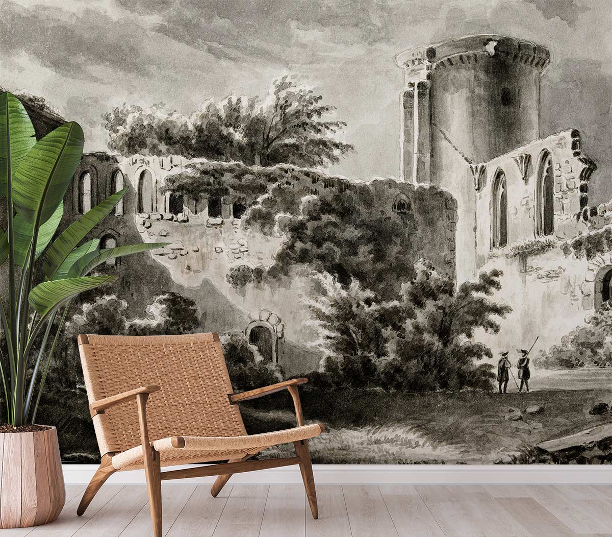Célébrez l'héritage de la France avec ce papier peint panoramique de la cour du Château de Botwel. Avec son design classique, ce papier peint présente une image de la célèbre architecture française entourant le château, avec ses douves et ses remparts. La palette de couleurs noir et blanc de cette peinture murale crée un look plus invitant et élégant qui peut compléter n'importe quelle pièce de votre maison ou de votre bureau. La texture subtile améliore l'aspect et le toucher de la peinture murale, tandis que le revêtement facile d'entretien facilite le nettoyage.