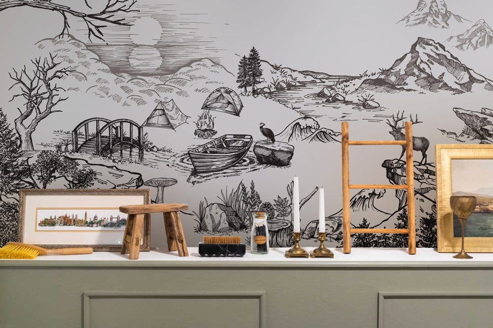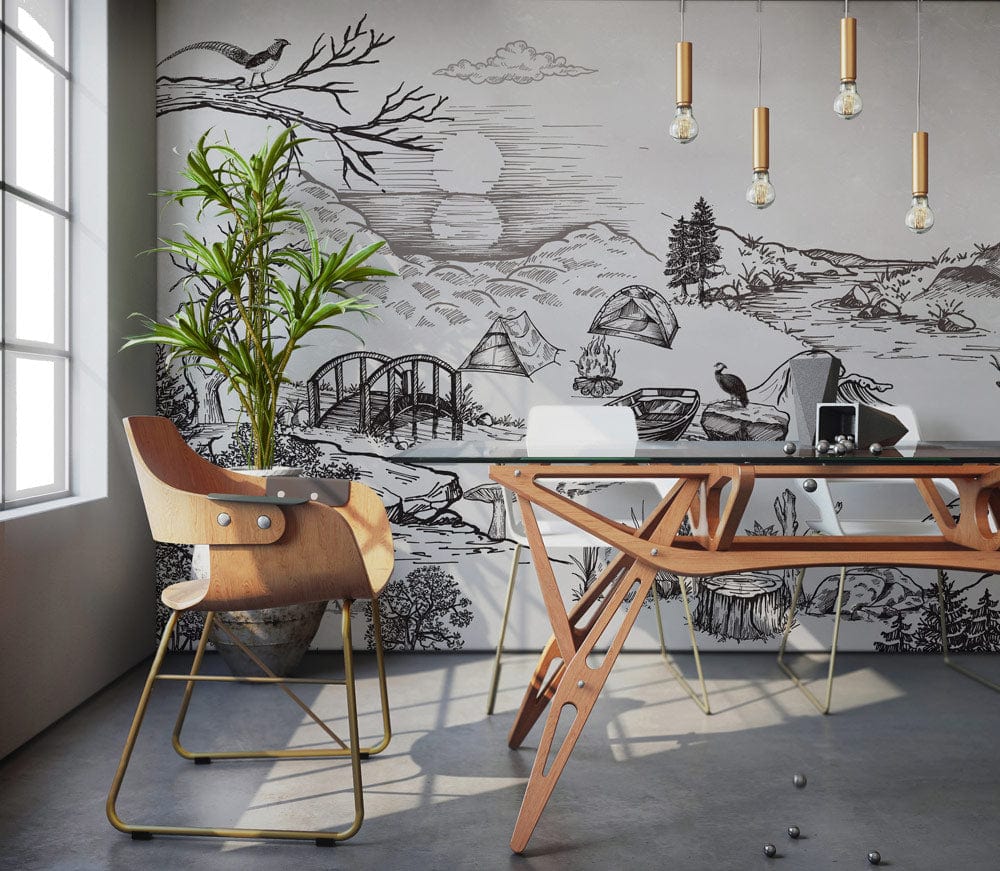 Créez l'ambiance d'une soirée agréable à la maison en ajoutant ce papier peint panoramique Sunset Landscape Sketch à votre décor. Le design simple mais magnifique de l'esquisse de paysage ajoutera un accent élégant à votre mur et apportera un côté apaisant à n'importe quelle pièce. Apportez la sensation de la vie en plein air à l'intérieur avec cette peinture murale sur le thème de la nature. Créé à partir d'un croquis de paysage ensoleillé accentué par des arbres, de l'herbe et du ciel, ce motif dépeint la beauté intemporelle du monde naturel avec une touche vintage.