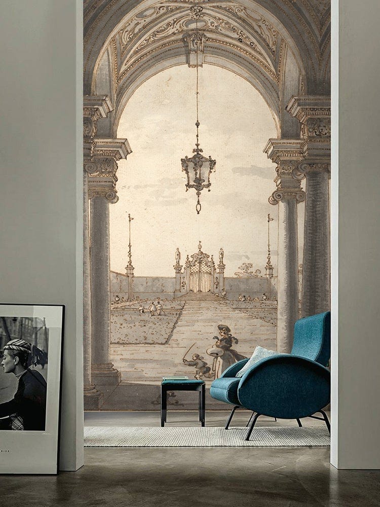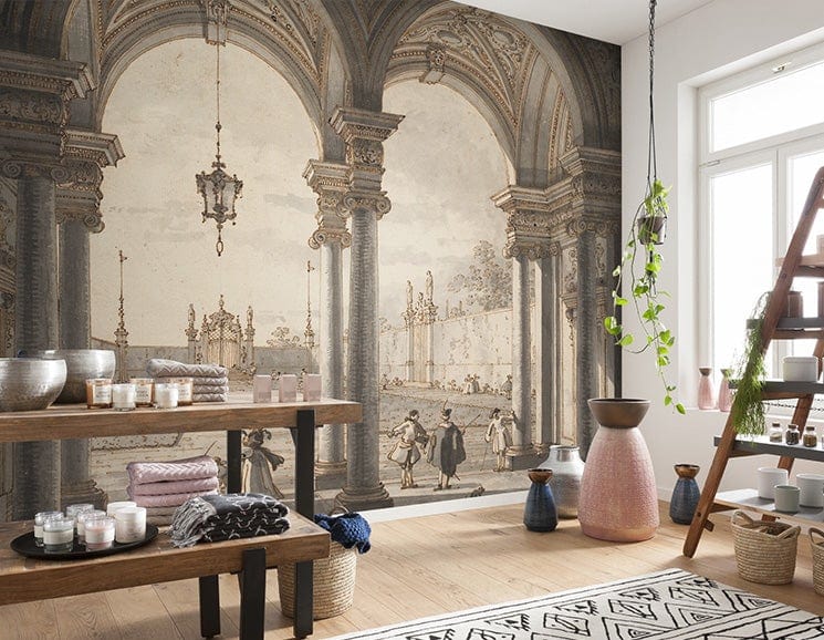 Explorez ce papier peint de jardin Colonnade baroque et améliorez l'atmosphère et les dimensions de votre espace. Associé aux tons neutres, ce design de style baroque est accrocheur et époustouflant. Créez un effet expansif et ouvrez votre espace dans votre salon, couloir ou bureau à domicile et utilisez des meubles de couleurs vives ou pastel pour une décoration complémentaire.