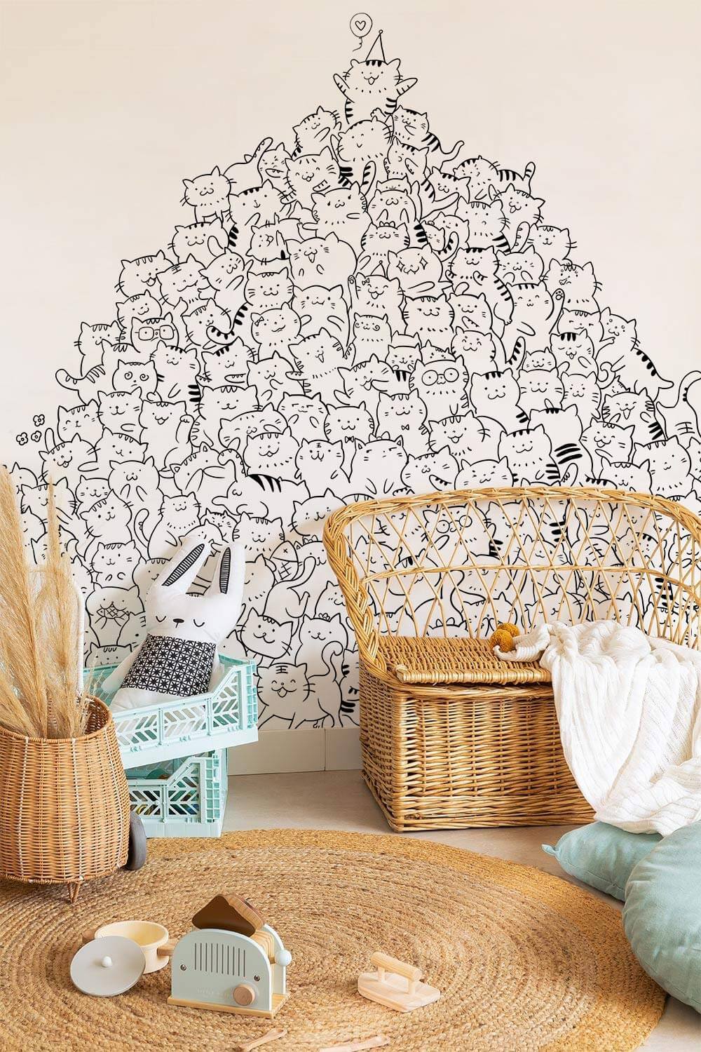 Apportez une ambiance spectaculaire à votre espace avec cette fresque murale en papier peint drôle de colline de chat, un design créatif et ludique. Notre papier peint animalier ne se démodera jamais et ferait un superbe mur caractéristique dans la chambre ou la salle de jeux de votre tout-petit. C'est une décoration murale idéale pour les nouveau-nés jusqu'à l'adolescence.