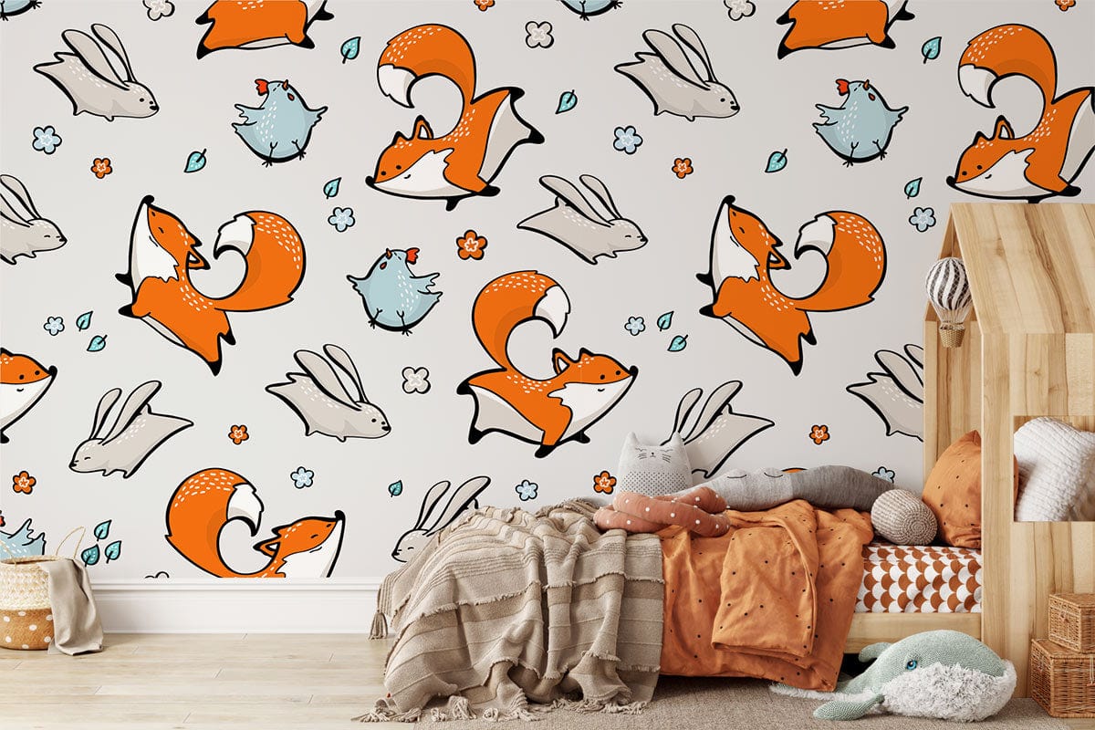 Sentez la dynamicité et la liberté avec ces petits animaux rien, dans notre conception murale de jouer aux renards et aux lapins avec des poulets, la puissance amusante du papier peint mural concevra votre Kidsā €? Room et le rendre plein d'énergie et de positivité. Ces petits animaux drôles rendront vos enfants heureux de leur chambre et ne s'ennuieront pas dans leur environnement. De nombreux enfants n'aiment pas rester dans leur chambre ou dormir. Mais ce papier peint de murale illustratif vous aidera à construire pour eux un nouveau monde imaginaire qui améliorera leurs compétences. Organisez la chambre avec des meubles noirs ou blancs et un lit pour une pièce plus contrastée.